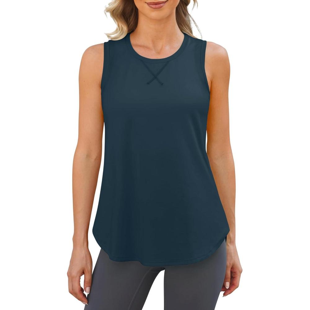 imageG4Free Lightweight Racerback Workout Tank Tops for Women High Neck Athletic Long Tanks Fast Dry Sleeveless Running ShirtsNavy