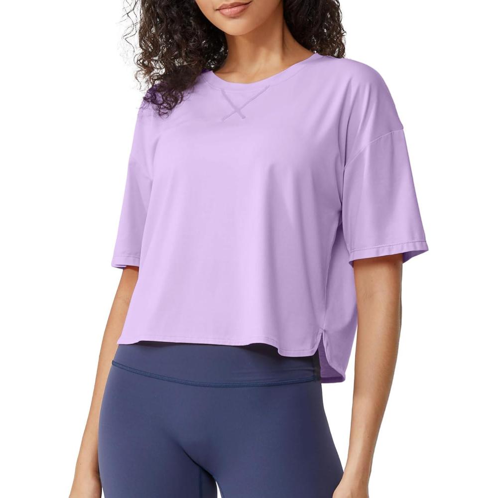 G4Free Lightweight Womens Workout Tops Loose Fit Short Sleeve Summer T Shirts Athletic Gym Tees Basic Yoga Shirts Casual(Light Purple)
