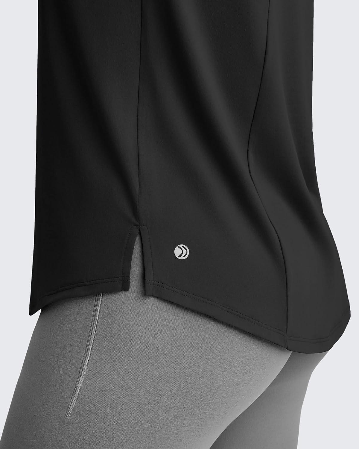 G4Free Lightweight Workout Tank Tops for Women High Neck Athletic Long Tanks Sleeveless Summer Running Gym Shirts(Black)