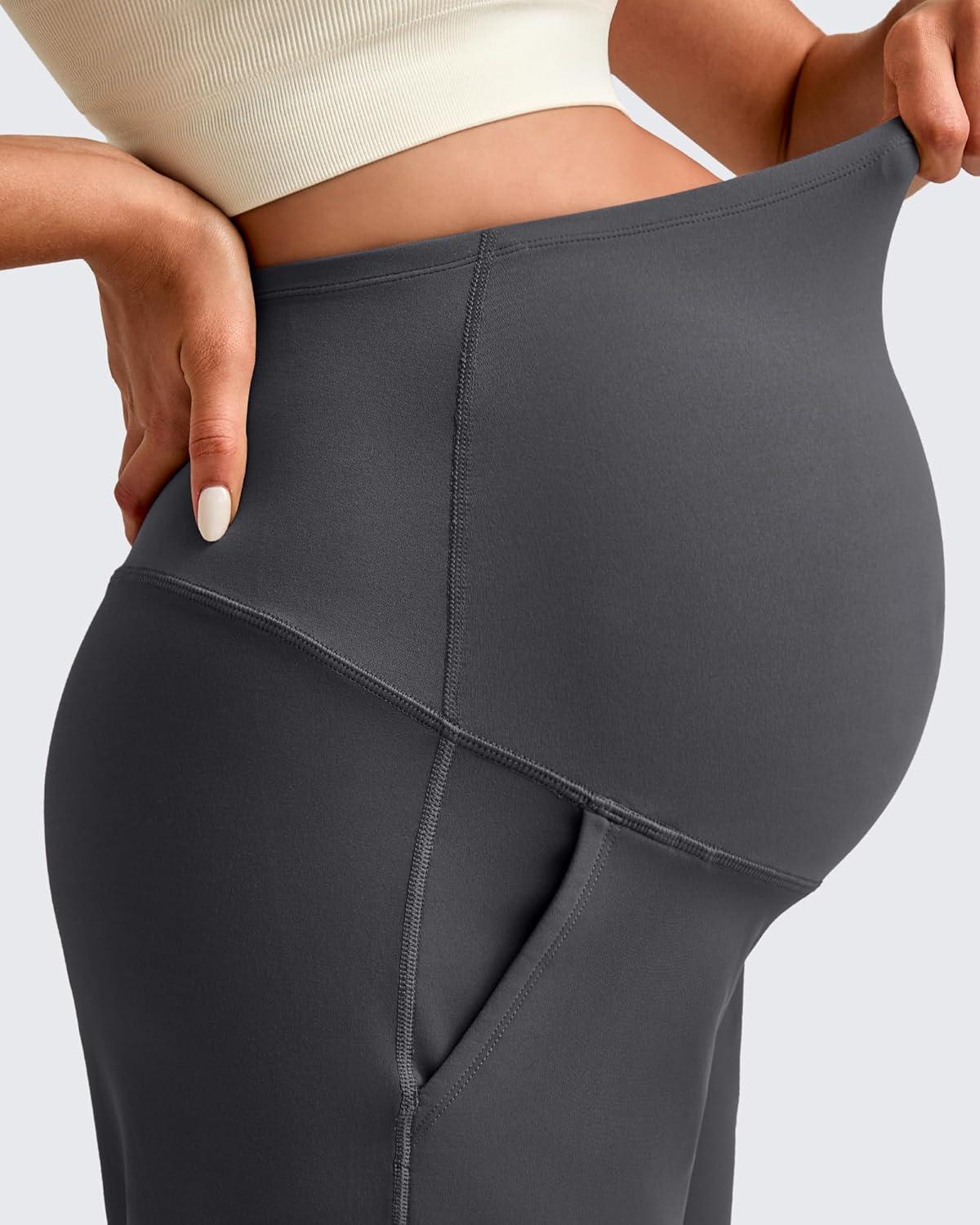 imageG4Free Maternity Athletic Shorts with Pockets Over The Belly Stretchy Workout Pants Pregnancy Wide Leg Bermuda CasualDark Gray