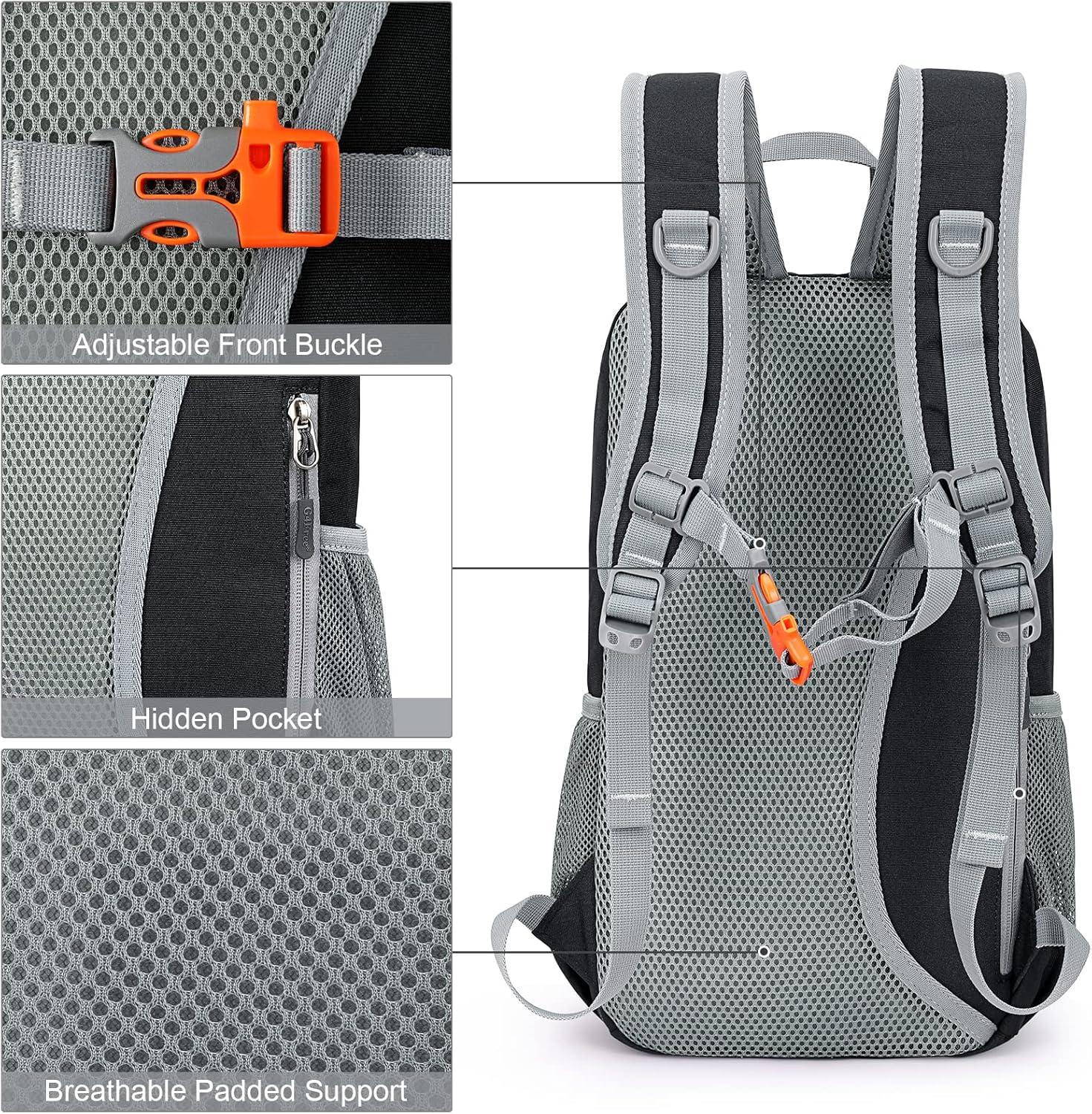 G4Free Hiking Backpack with Thickened Back Panel Packable 25L Lightweight Foldable Travel Daypack for Men Women(Black)(Grey)