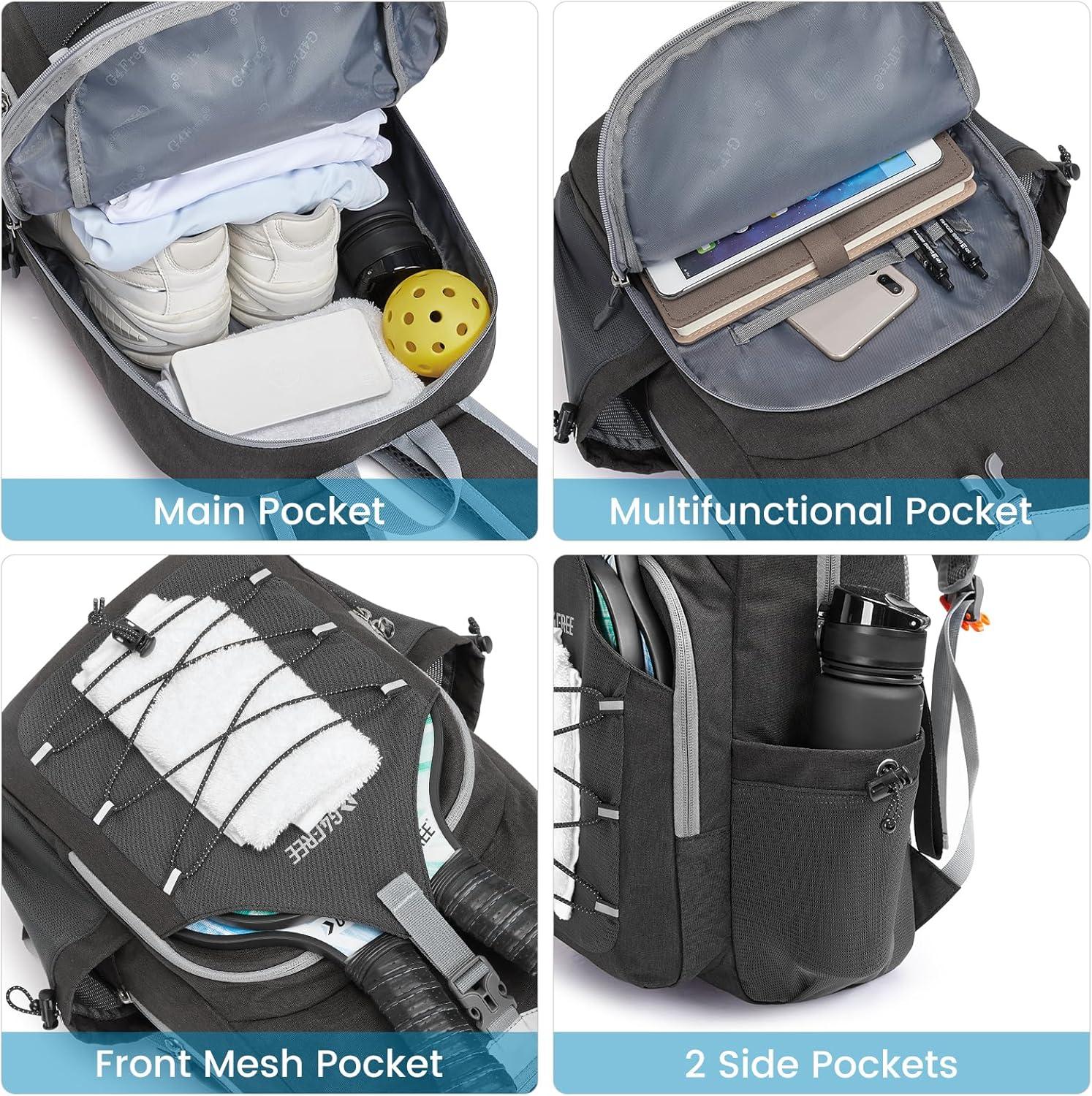 G4Free Pickleball Bag, Pickleball Backpack for Women and Men, Padel Bag Fits 2 to 4 Paddles, Gifts for Pickleball Lovers(Dark Grey)