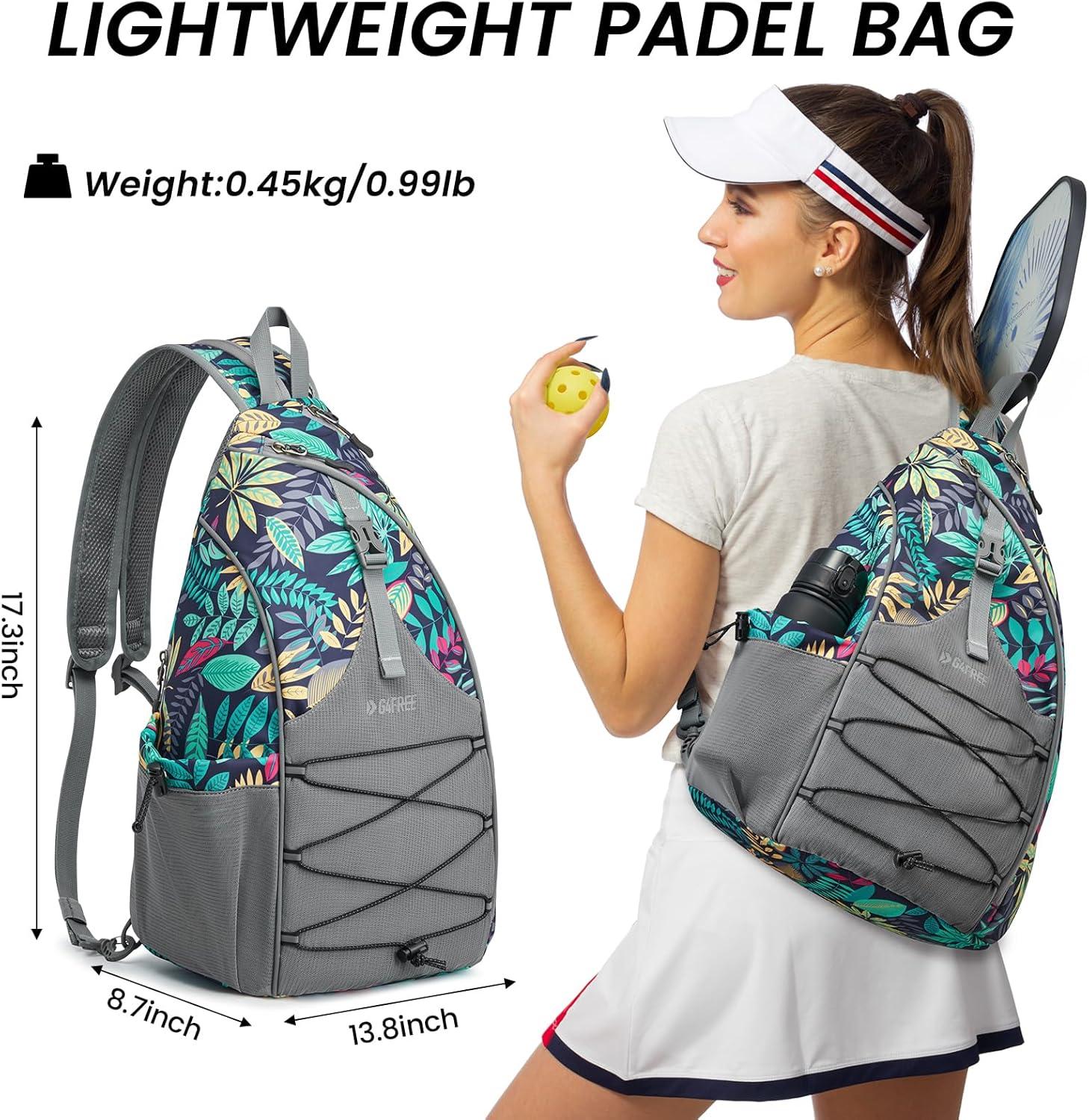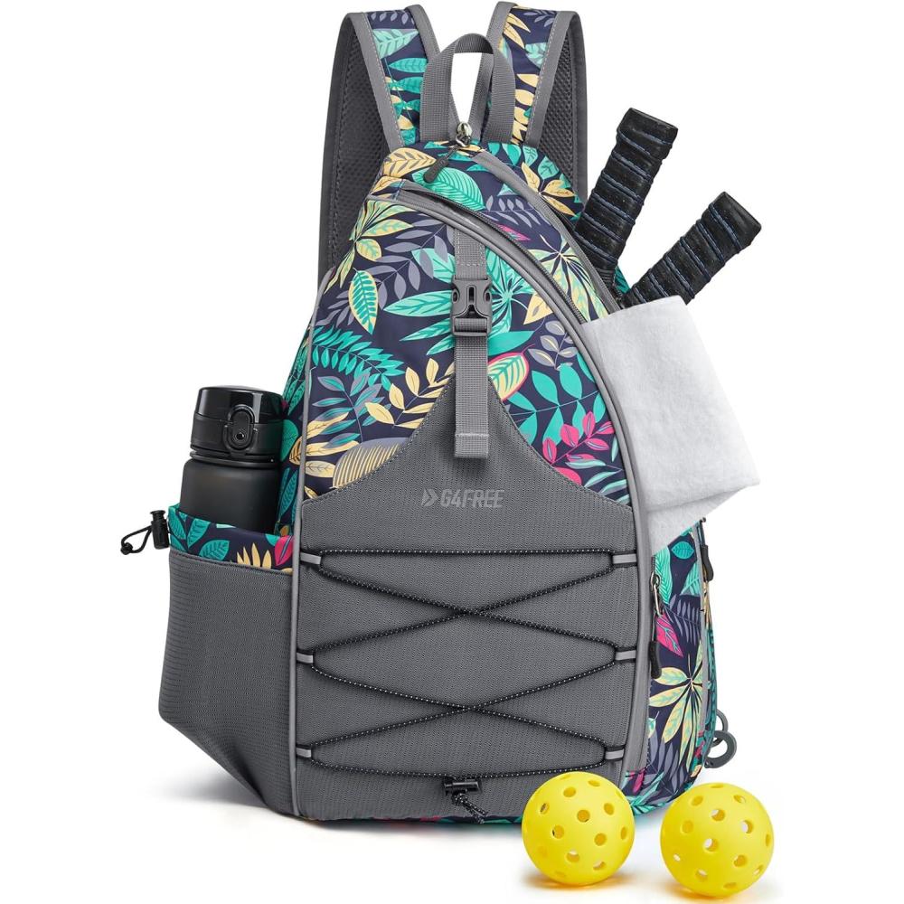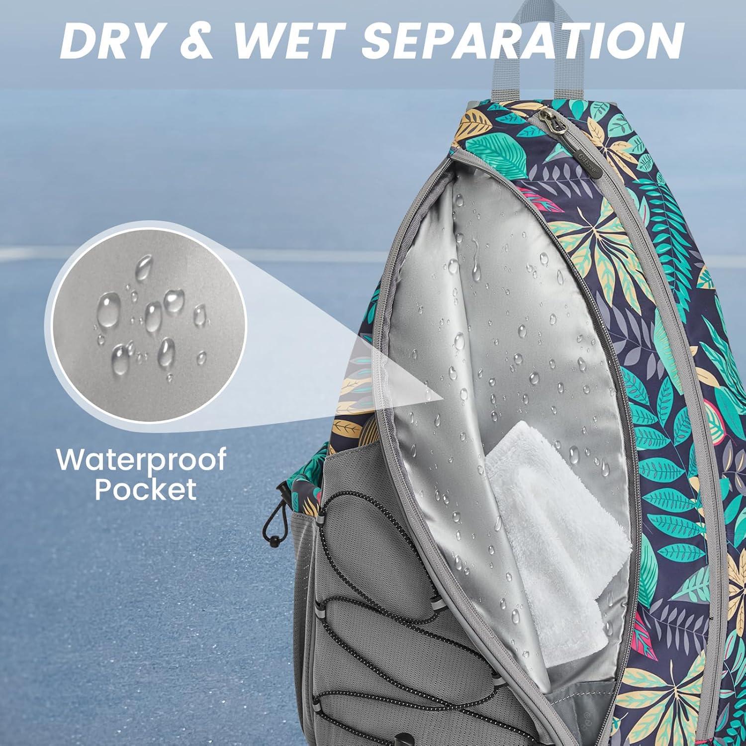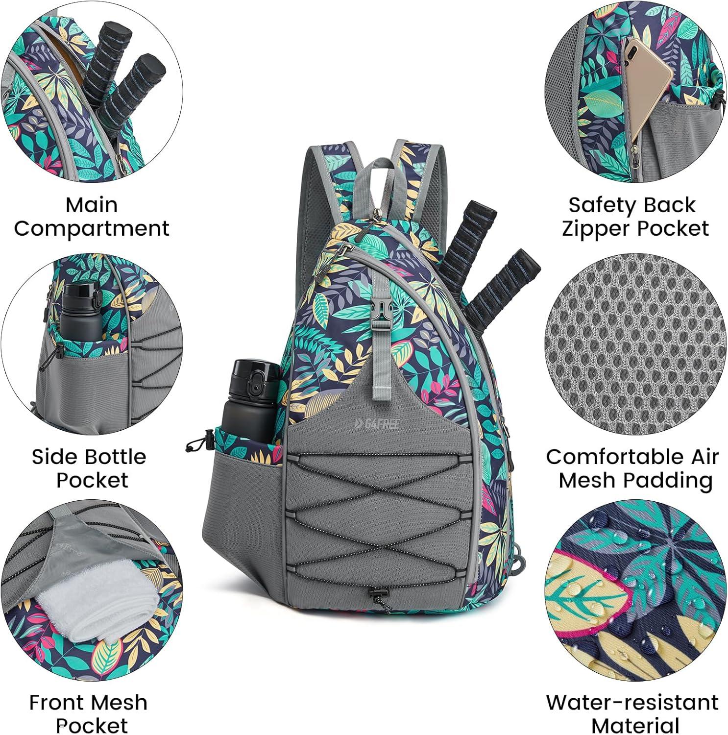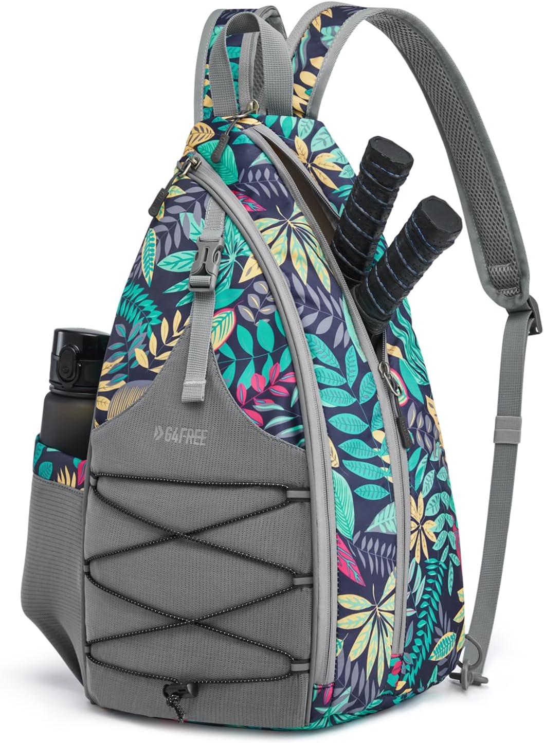G4Free Pickleball Bag, Pickleball Backpack for Women & Men, Adjustable Sling Bag with Waterproof Pocket/Fence Hook, Blue Leaf(Blue Leaf)