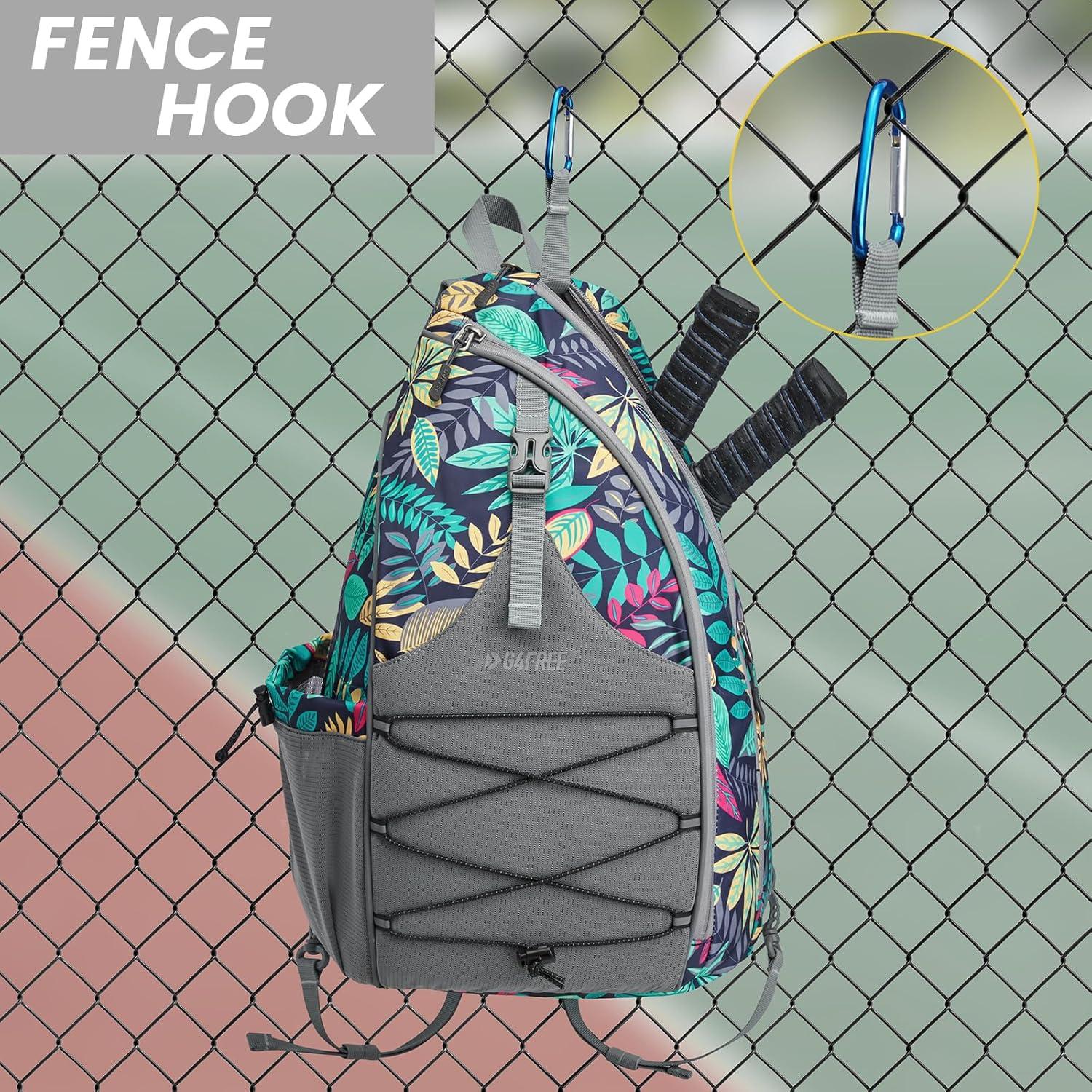 G4Free Pickleball Bag, Pickleball Backpack for Women & Men, Adjustable Sling Bag with Waterproof Pocket/Fence Hook, Blue Leaf(Dark Grey)