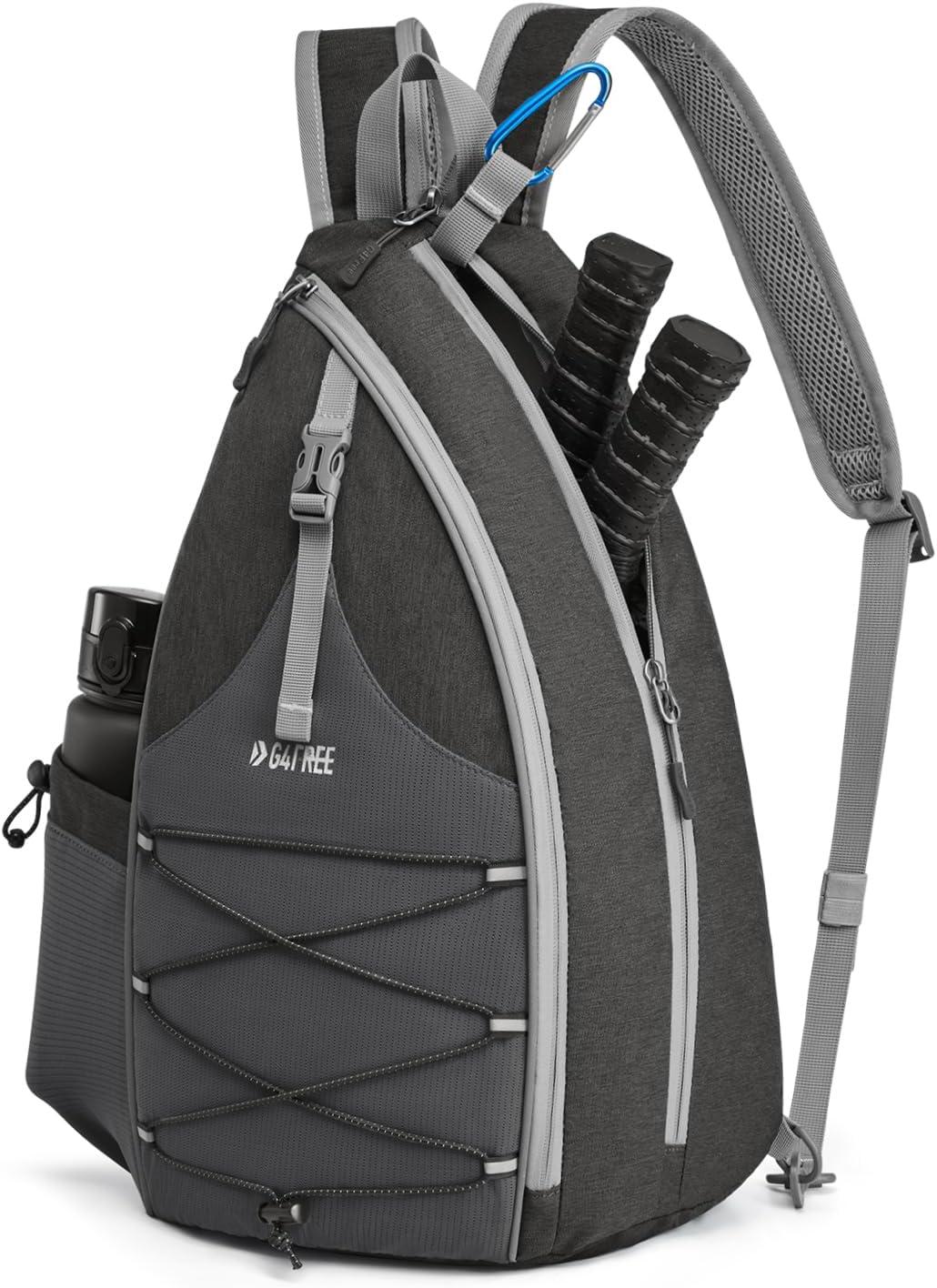 G4Free Pickleball Bag, Pickleball Backpack for Women & Men, Adjustable Sling Bag with Waterproof Pocket/Fence Hook, Blue Leaf(Dark Grey)