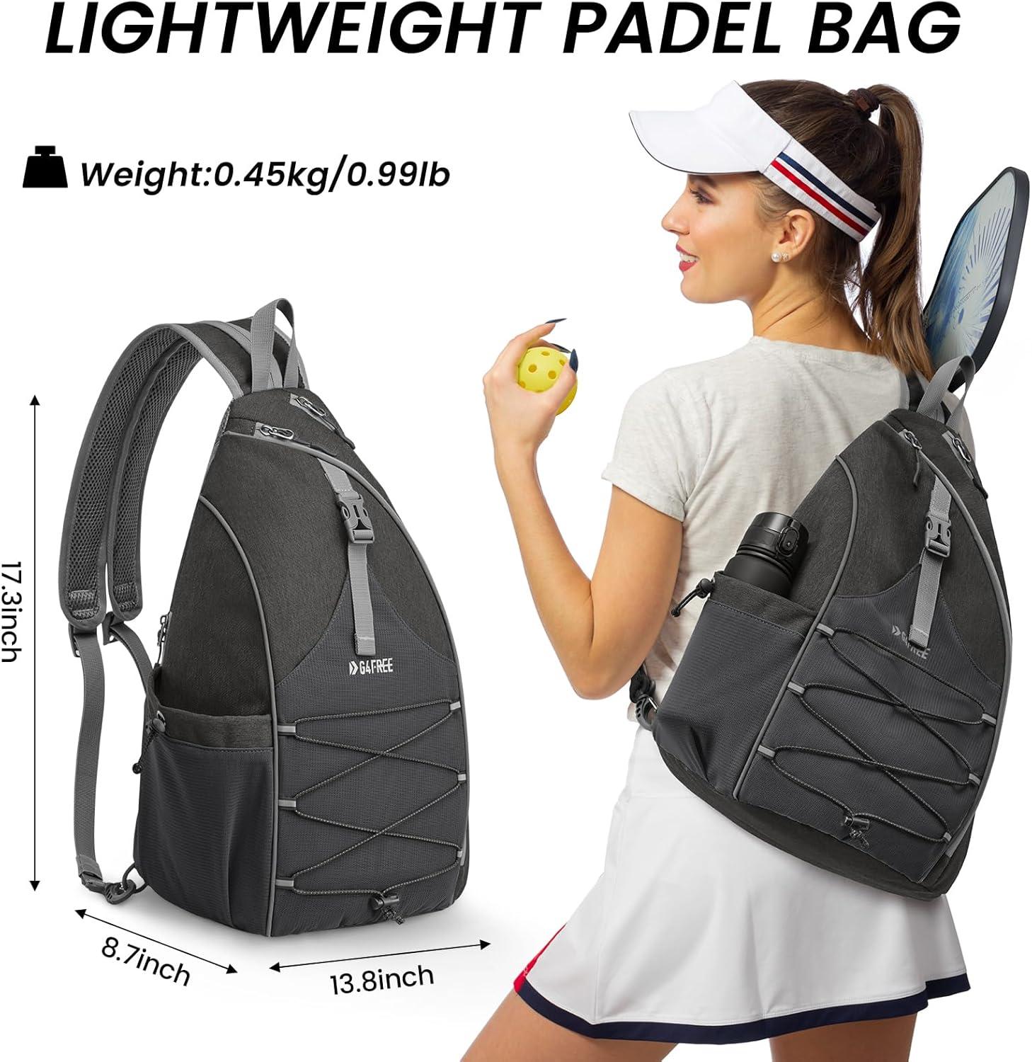 imageG4Free Pickleball Bag Pickleball Backpack for Women ampamp Men Adjustable Sling Bag with Waterproof PocketFence Hook Blue LeafLight Grey