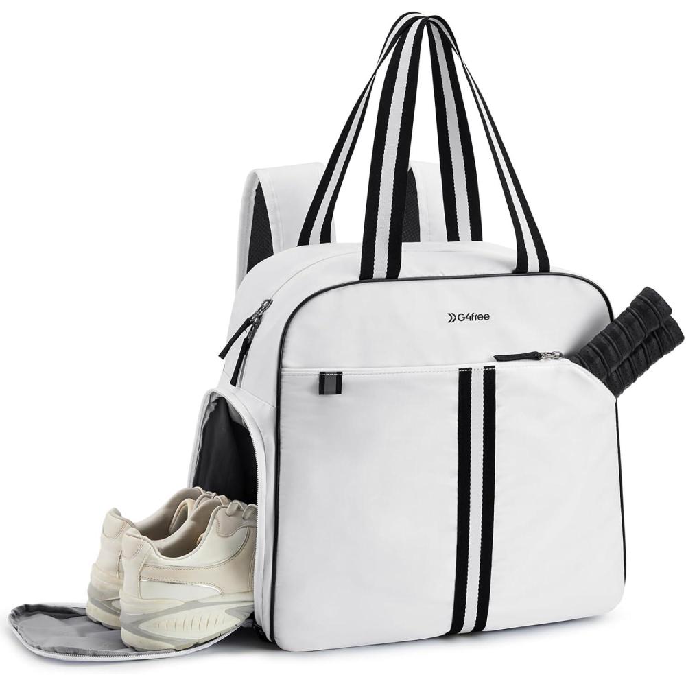 G4Free Pickleball Bag, Pickleball Bag Tote for Women and Men(White)