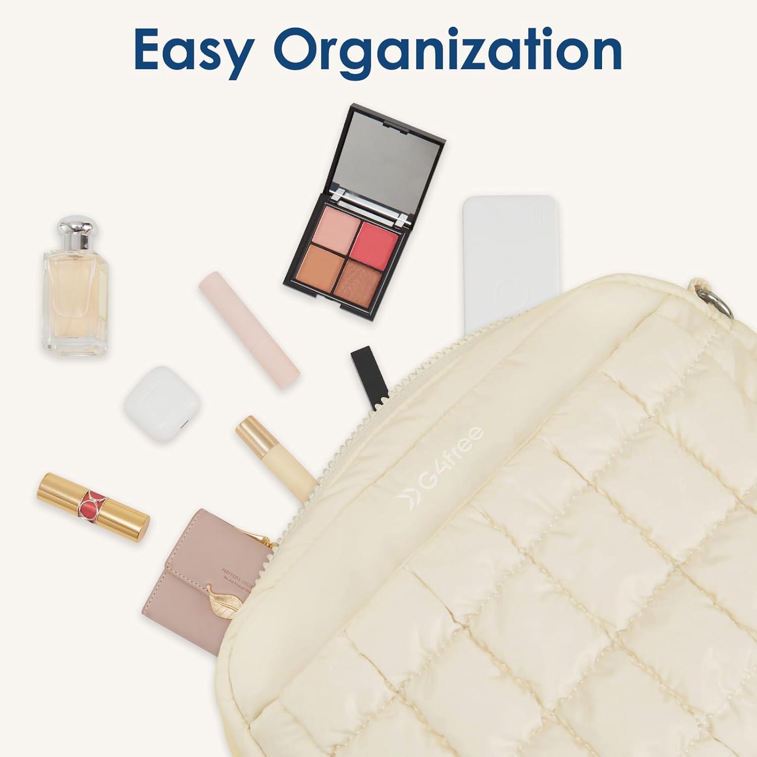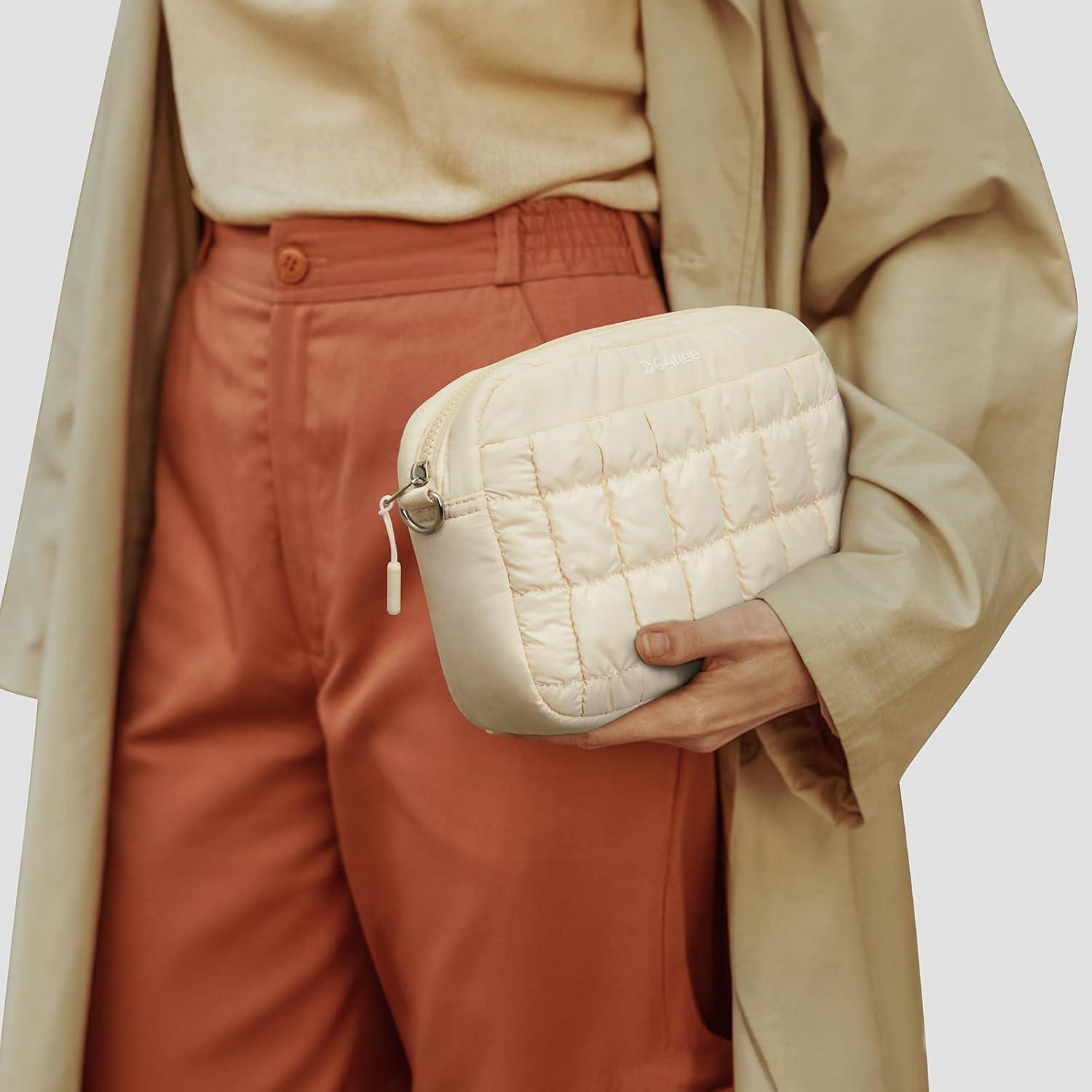 G4Free Puffer Crossbody Bag for Women, Lightweight Small Purse Casual Quilted Clutch Fashionable Shoulder Handbag(Yellowish Beige)