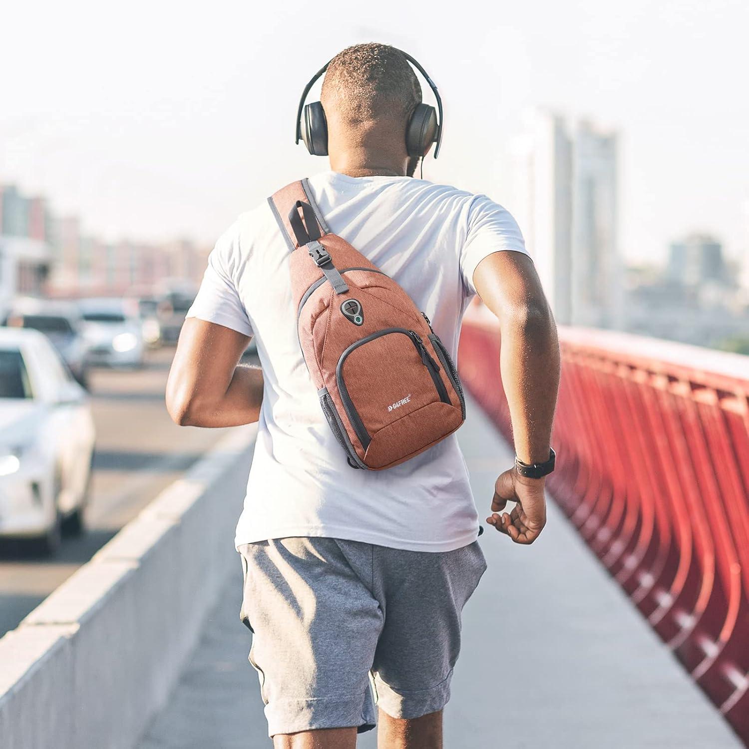 imageG4Free RFID Sling Bag Crossbody Backpack Small Chest Shoulder Bag Hiking OutdoorLight Orange