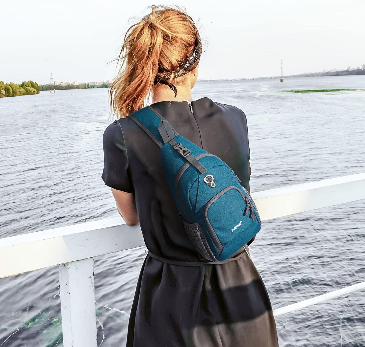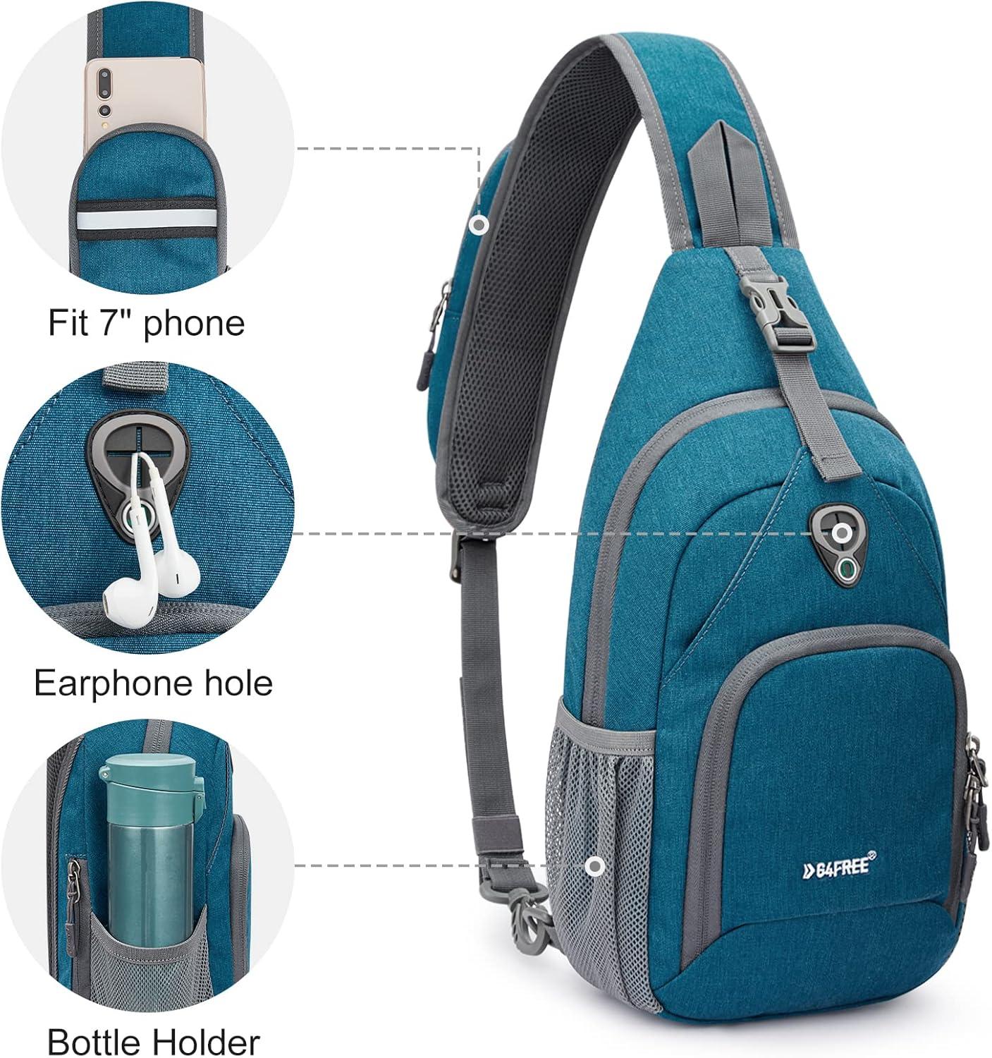 imageG4Free RFID Sling Bag Crossbody Backpack Small Chest Shoulder Bag Hiking OutdoorTeal Blue