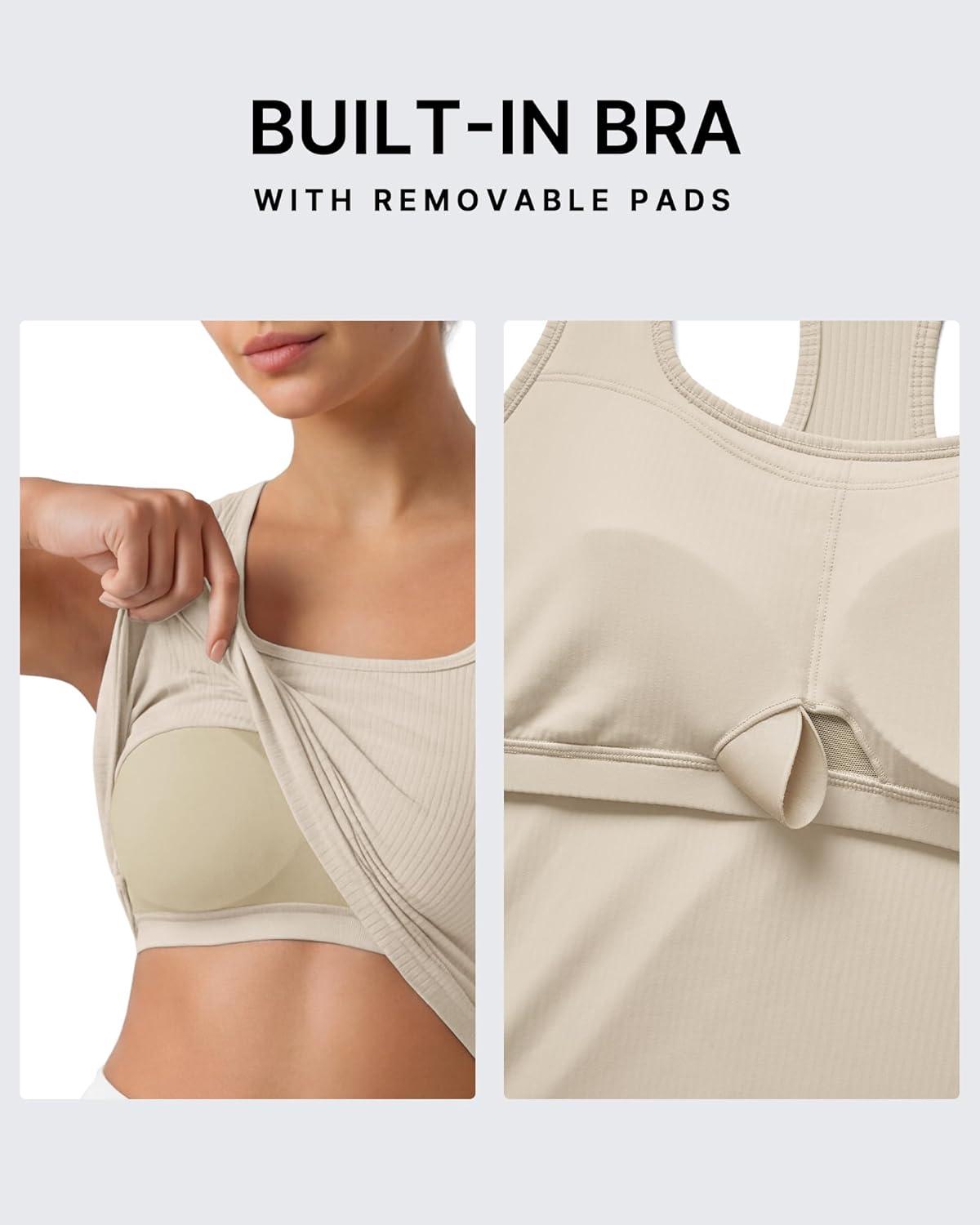 G4Free Ribbed Removable Built in Bra Workout Tank Tops Woman Racerback Square Neck Yoga Top Lightweight Athletic Tanks(Taupe)