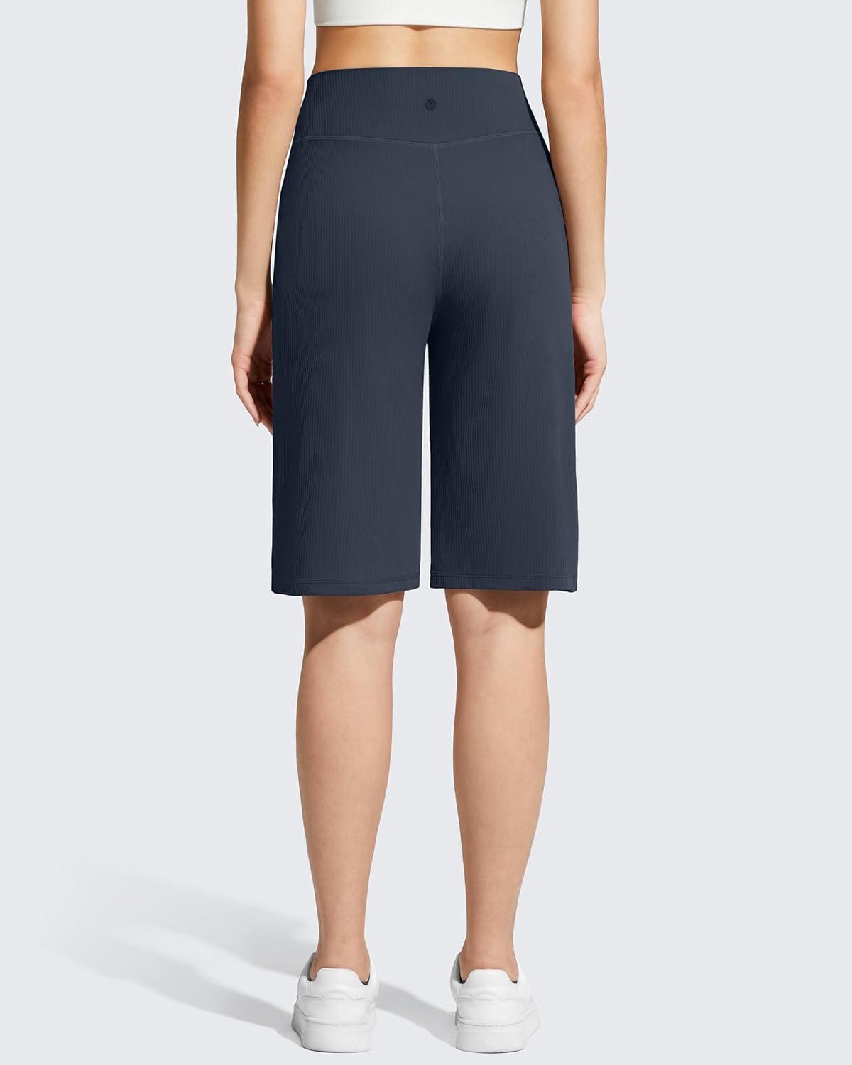 G4Free Ribbed Women's 11" Bermuda Shorts with Pockets High Waisted Knee Length Long Shorts Casual Workout(Dark Navy)