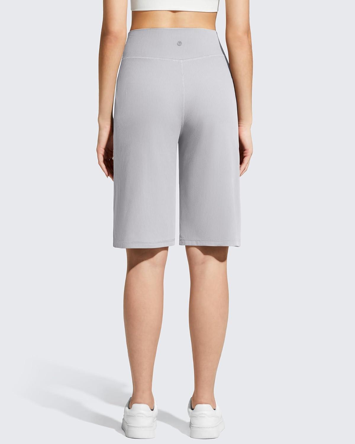 G4Free Ribbed Women's 11" Bermuda Shorts with Pockets High Waisted Knee Length Long Shorts Casual Workout(Silver Gray)