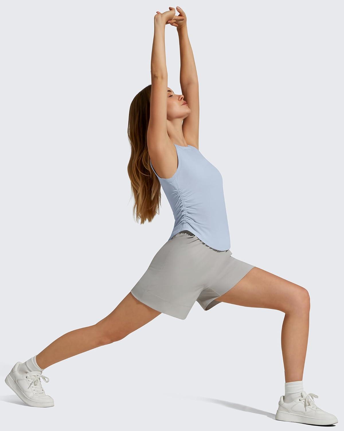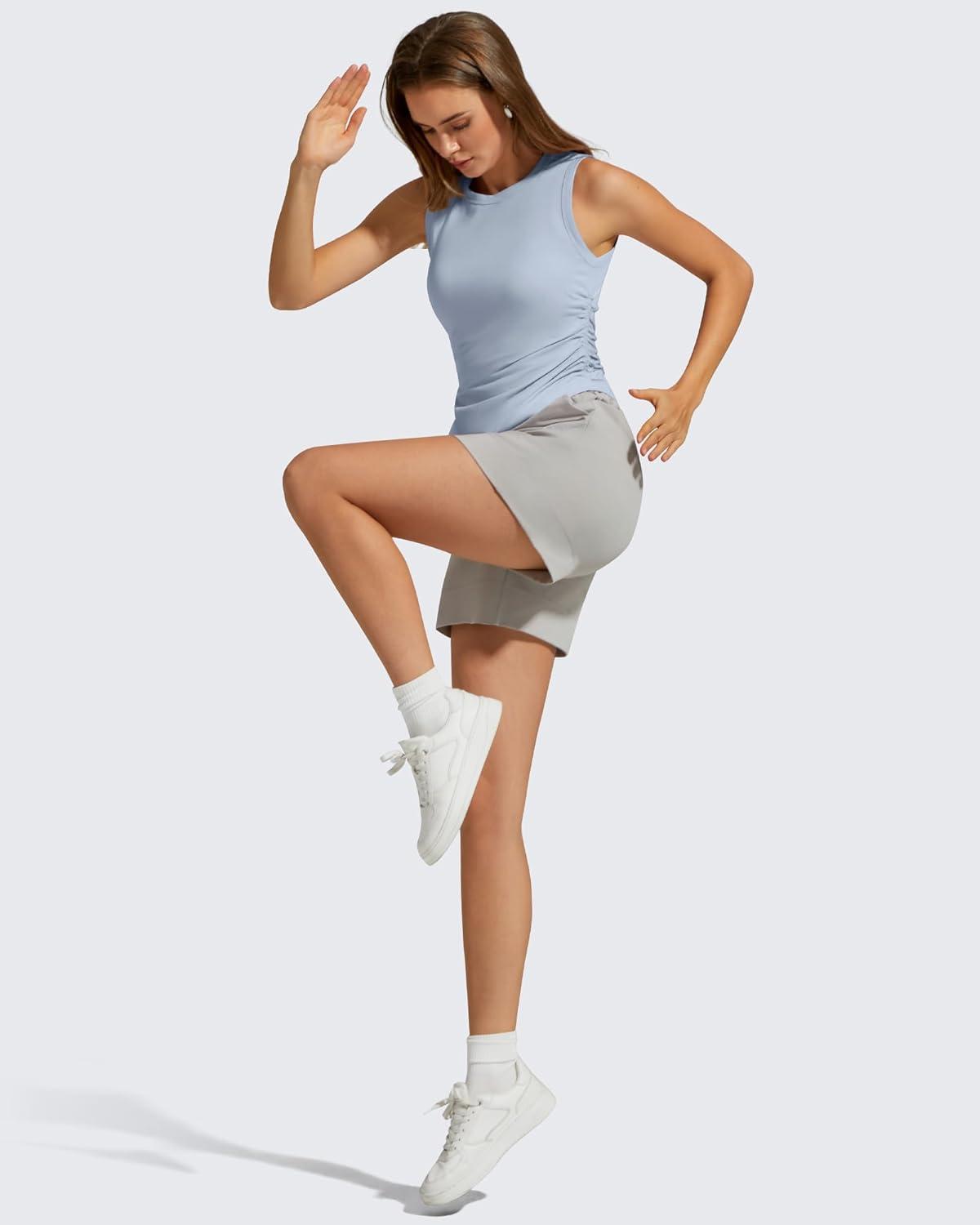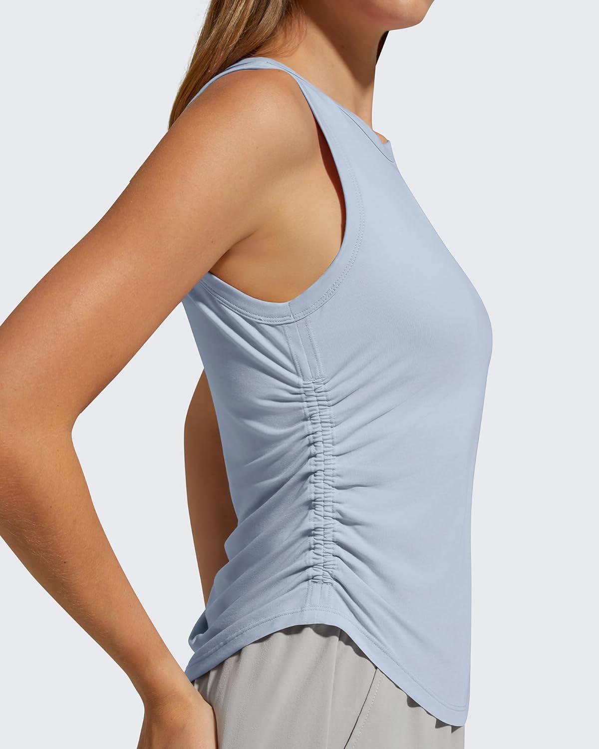 G4Free Ruched Side Workout Tank Tops Woman High Neck Waist Length Gym Tanks Soft Relaxed Fit for Training(Light Denim)
