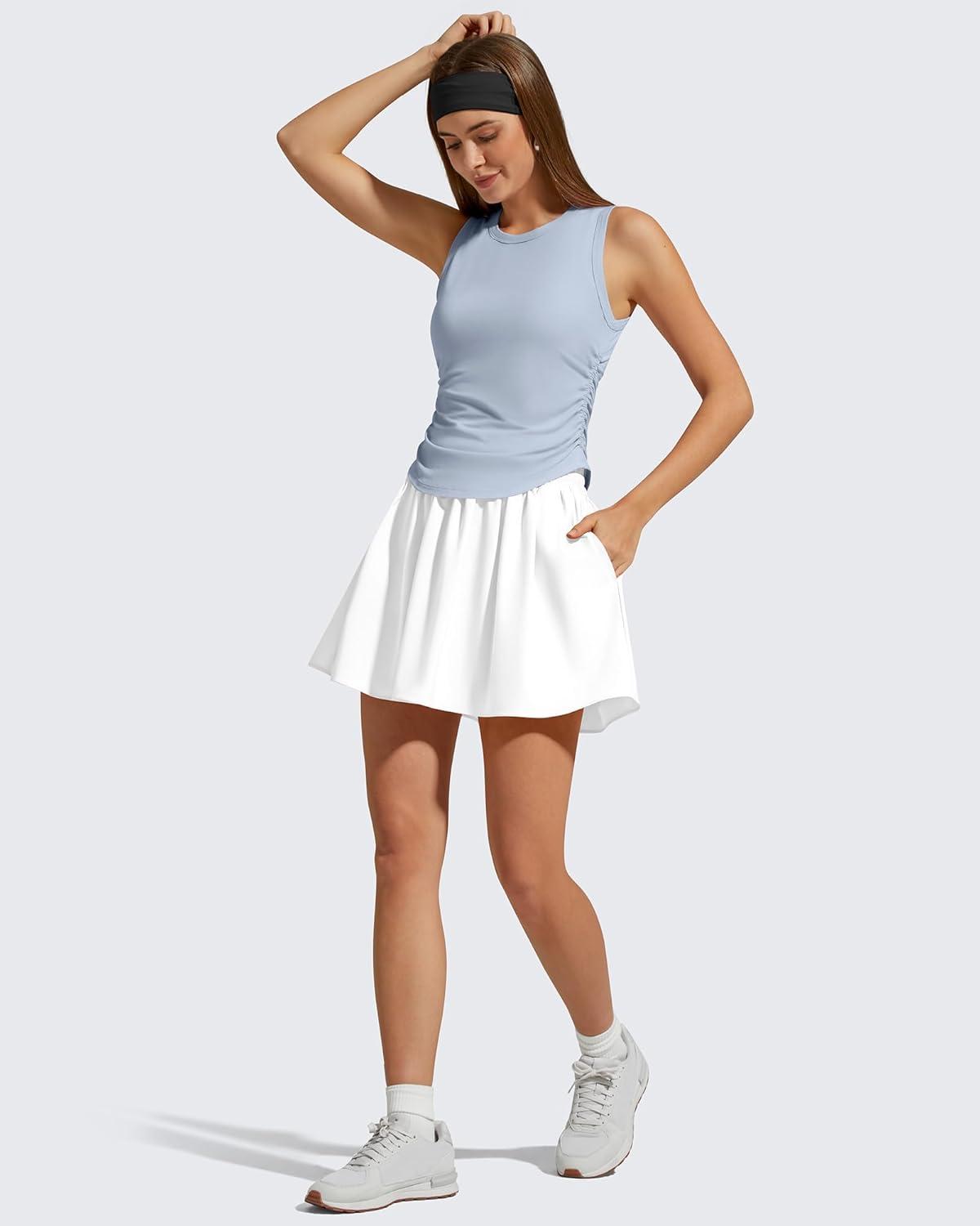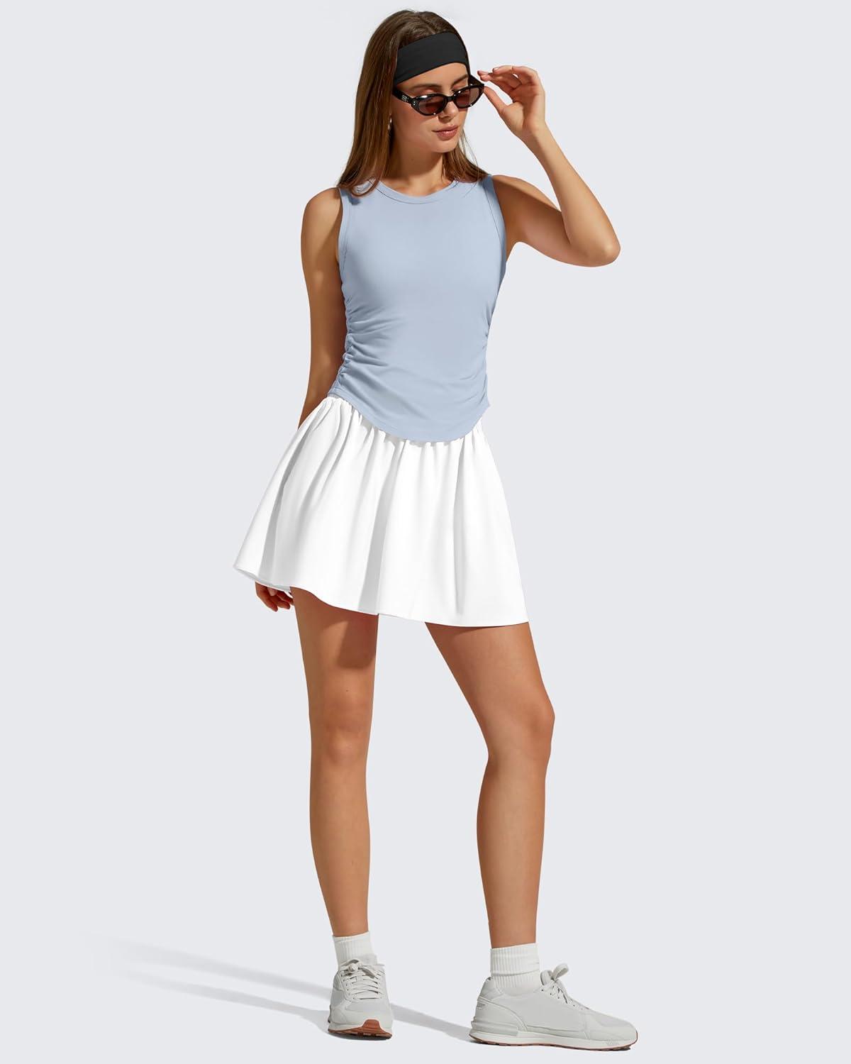 G4Free Ruched Side Workout Tank Tops Woman High Neck Waist Length Gym Tanks Soft Relaxed Fit for Training(Pure White)