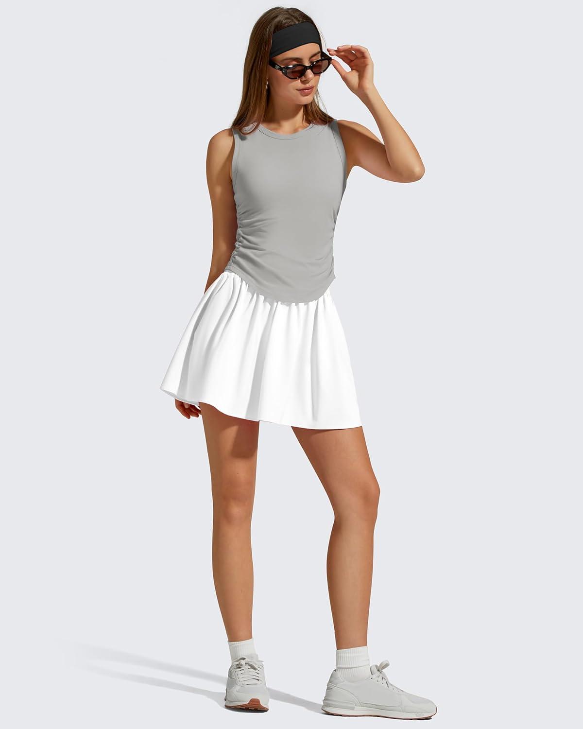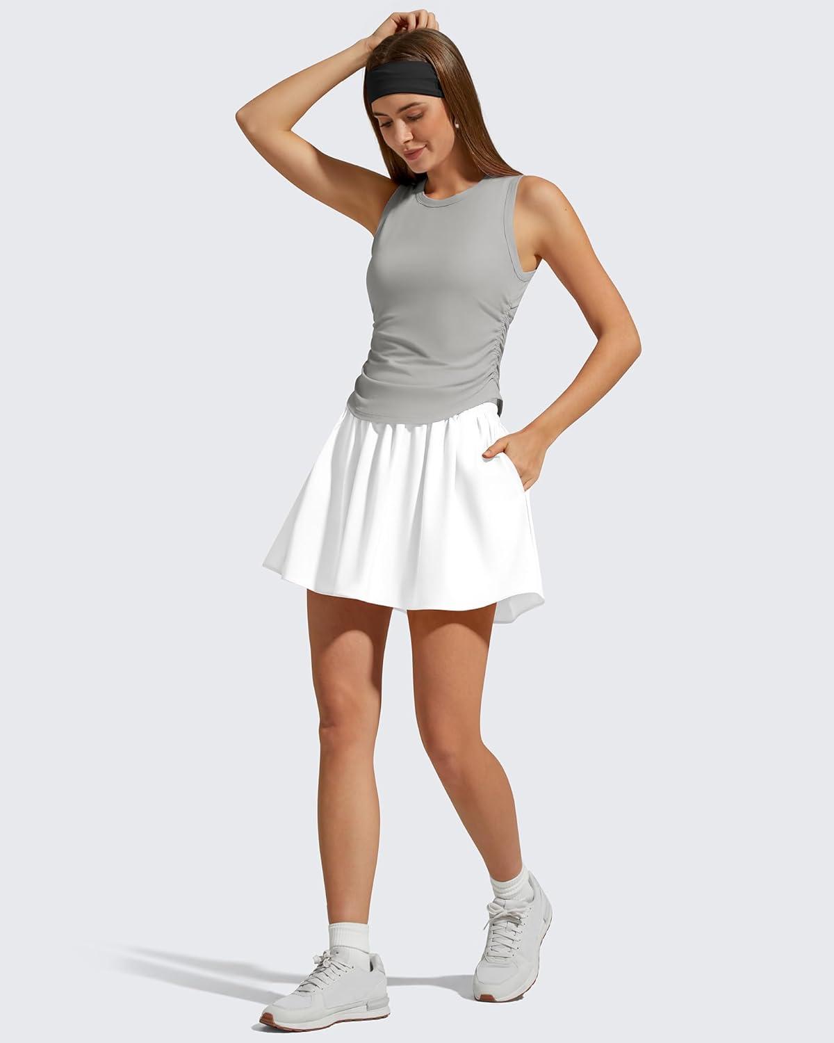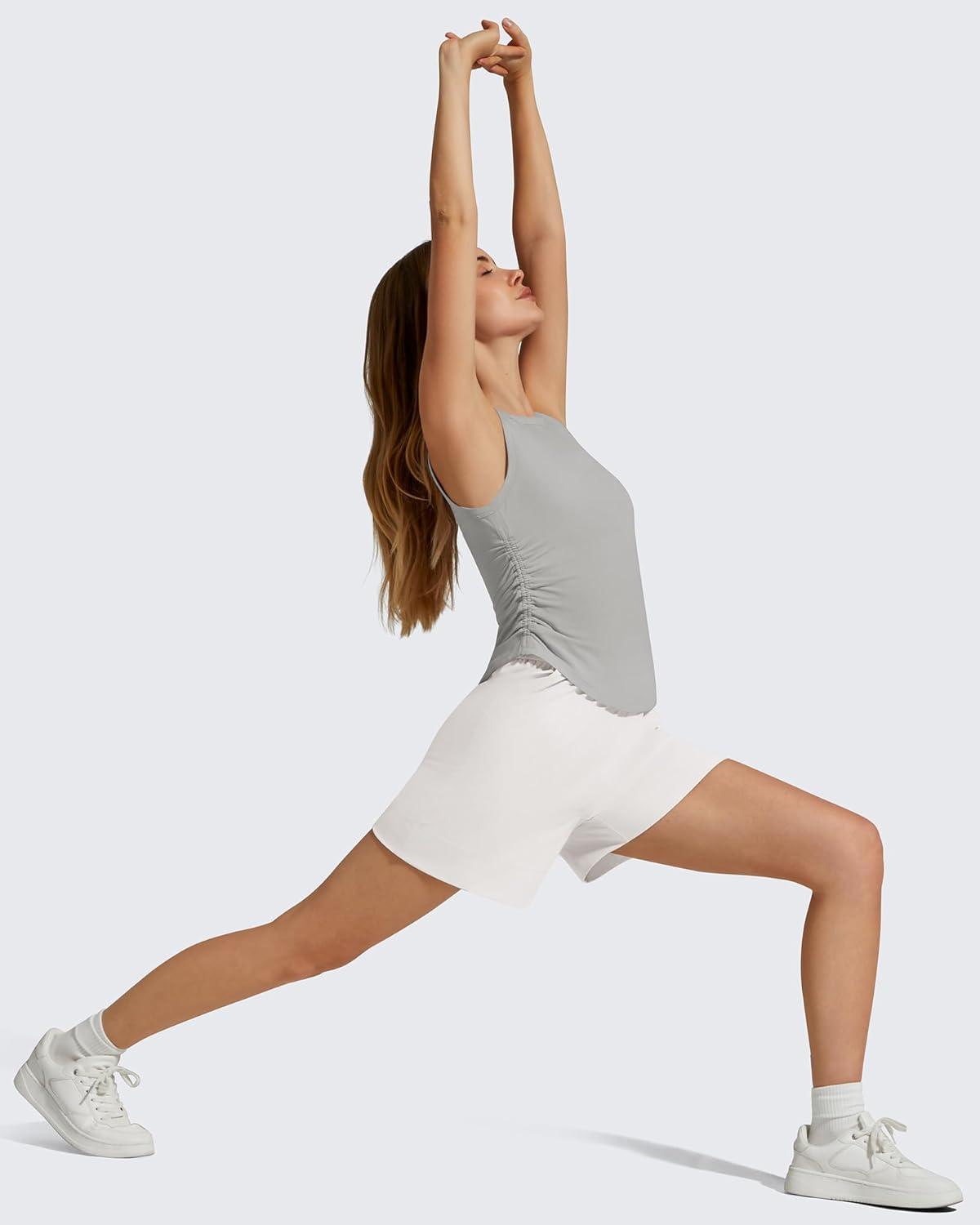 G4Free Ruched Side Workout Tank Tops Woman High Neck Waist Length Gym Tanks Soft Relaxed Fit for Training(Light Gray)