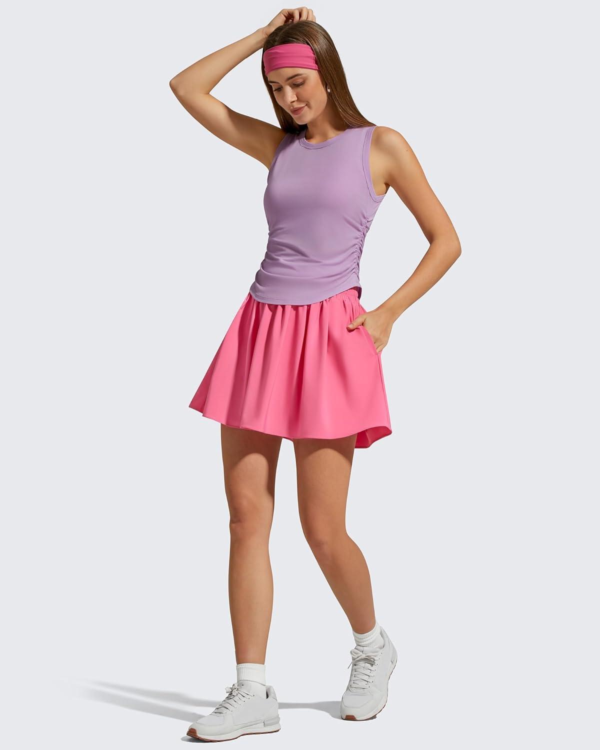 G4Free Ruched Side Workout Tank Tops Woman High Neck Waist Length Gym Tanks Soft Relaxed Fit for Training(Light Pink)