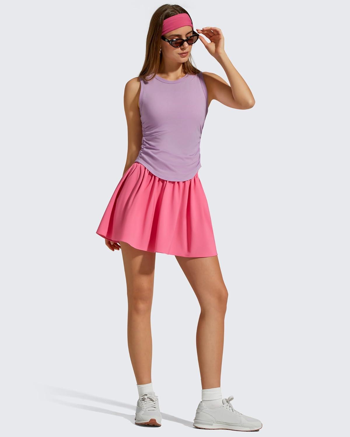 G4Free Ruched Side Workout Tank Tops Woman High Neck Waist Length Gym Tanks Soft Relaxed Fit for Training(Light Purple)