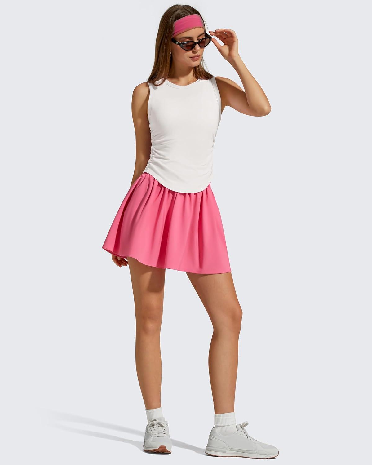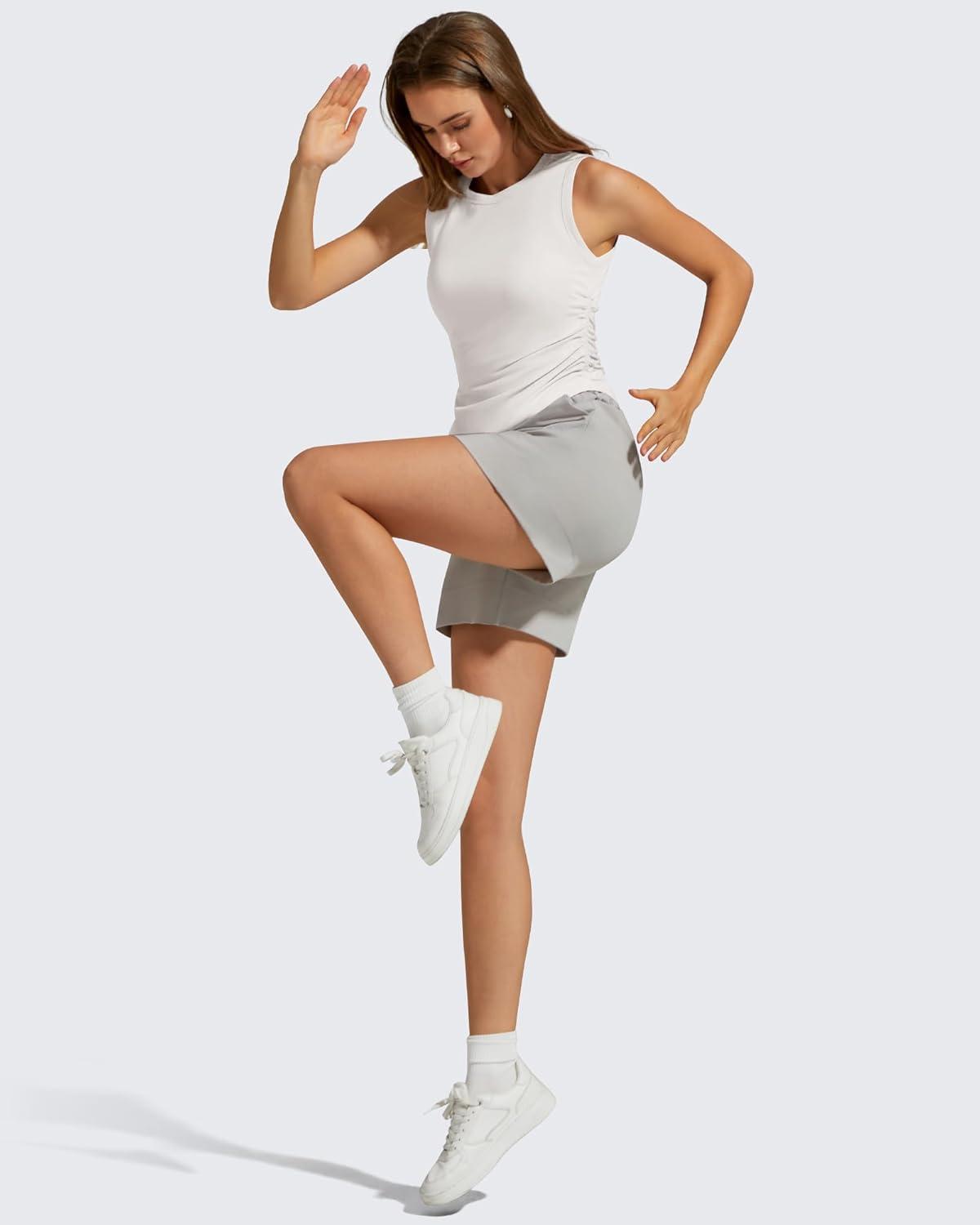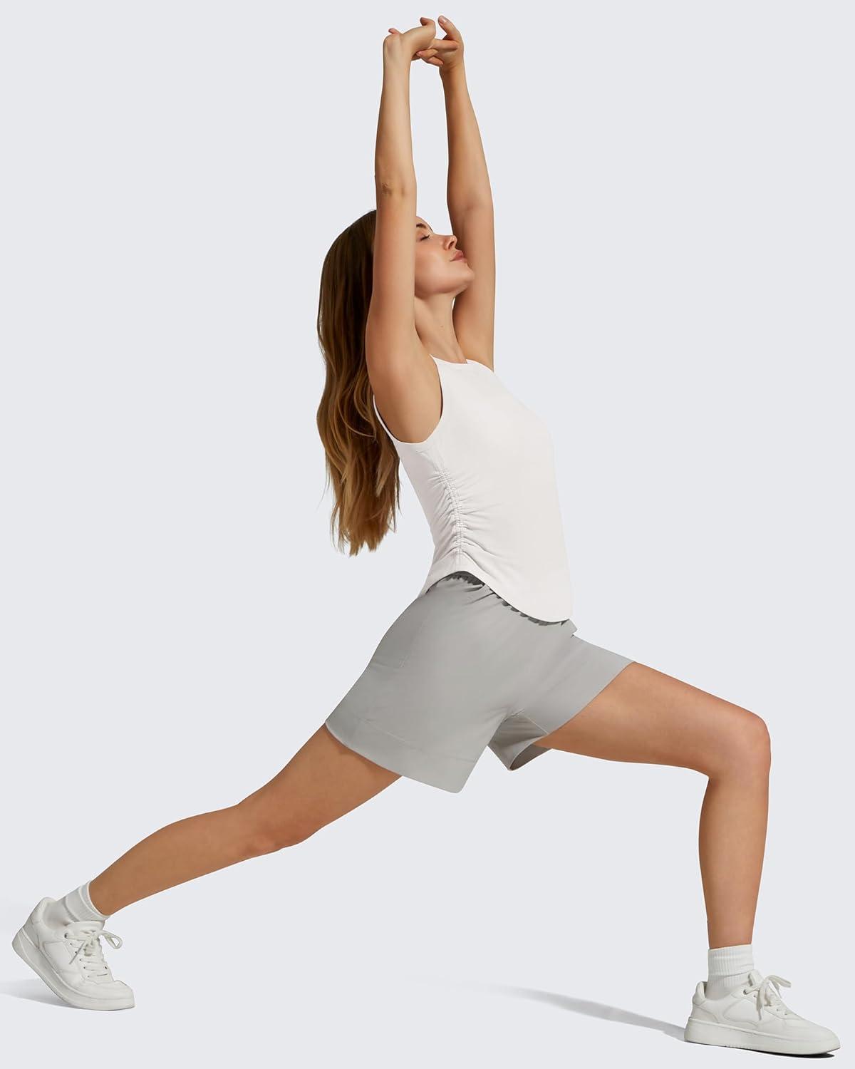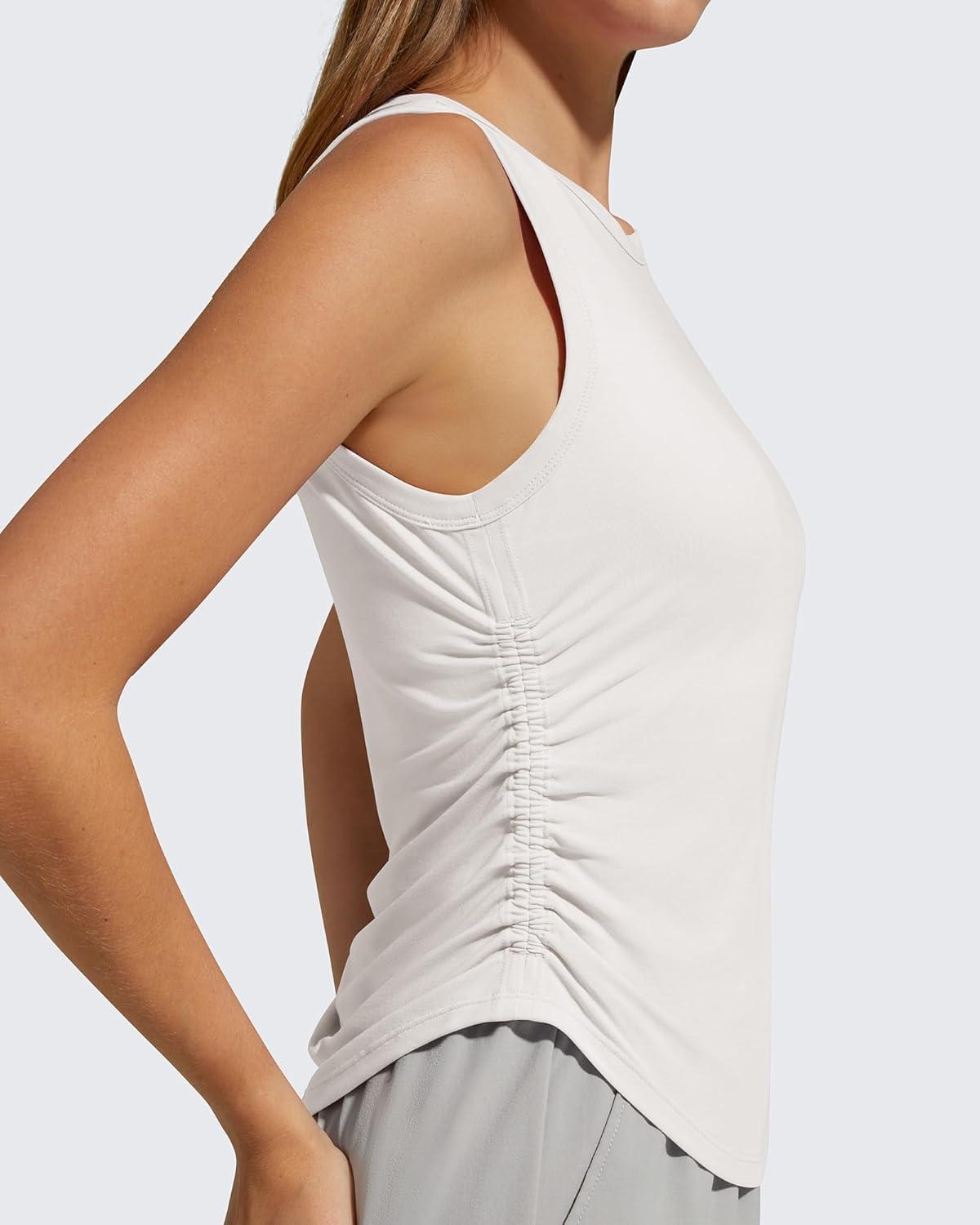 G4Free Ruched Side Workout Tank Tops Woman High Neck Waist Length Gym Tanks Soft Relaxed Fit for Training(Pure White)