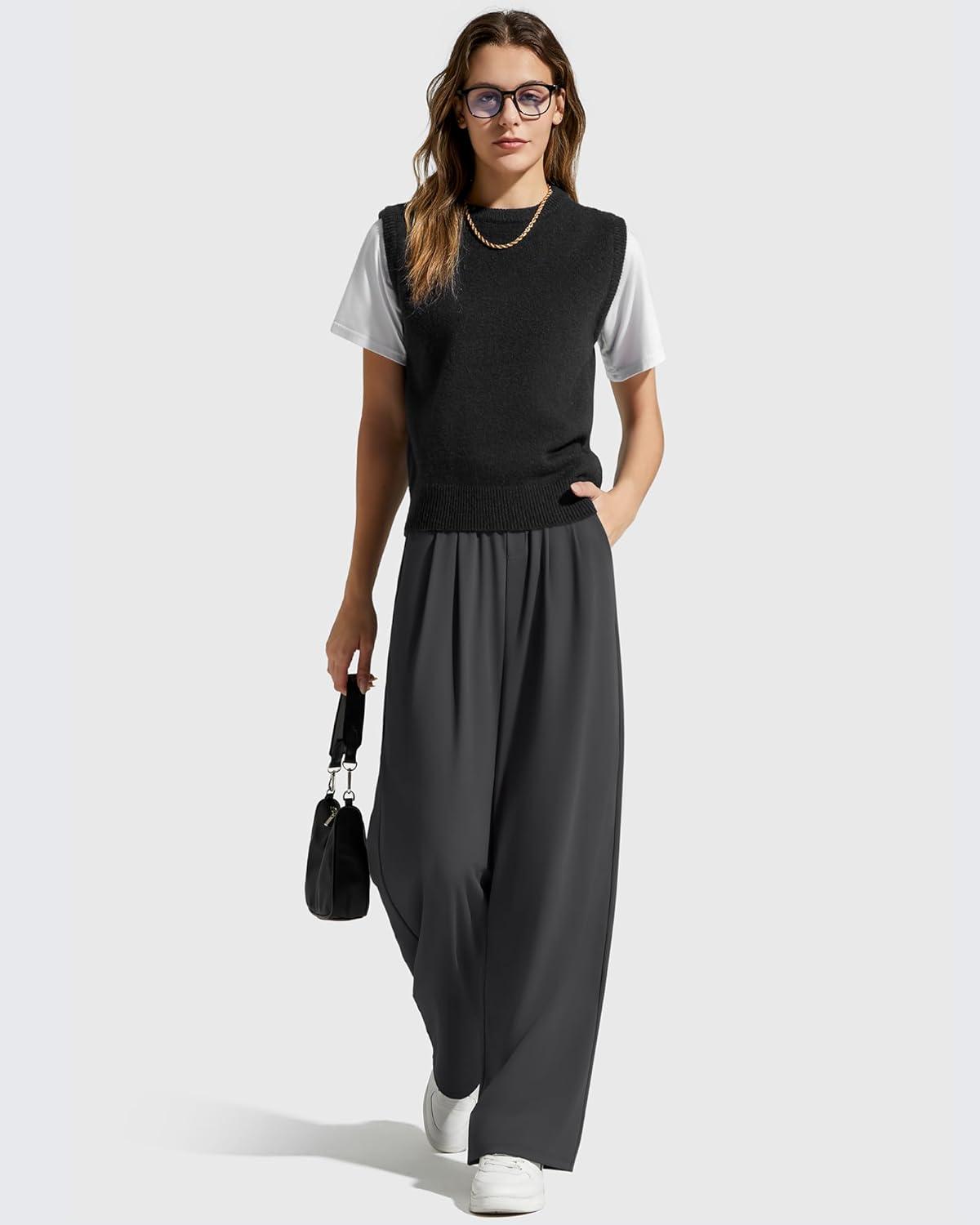 imageG4Free ShiftReady Womens Wide Leg Dress Yoga Pants with Pockets Dressy Casual Slacks High Waist Work TrousersDark Gray
