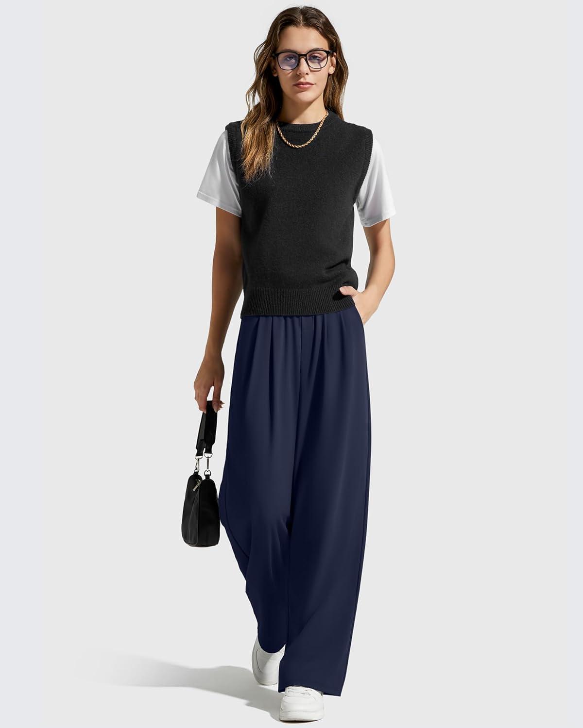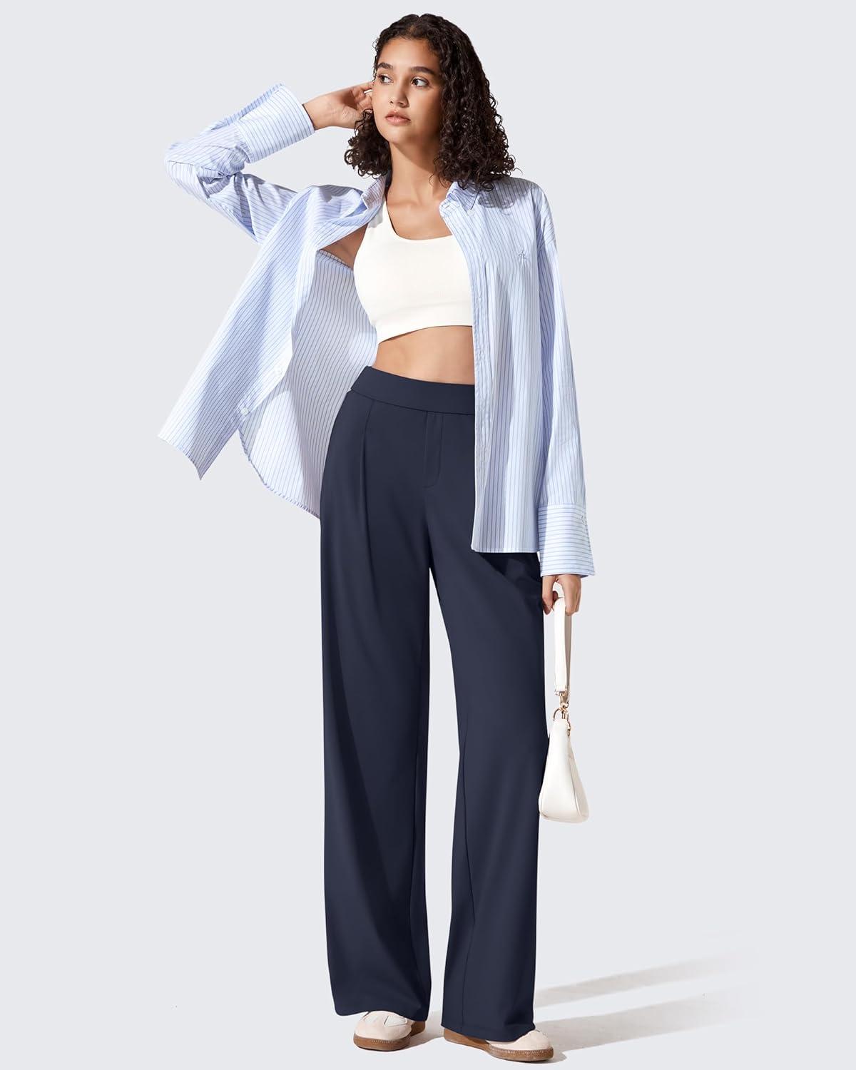 G4Free ShiftReady Women's Wide Leg Dress Yoga Pants with Pockets Dressy Casual Slacks High Waist Work Trousers(Dark Navy)