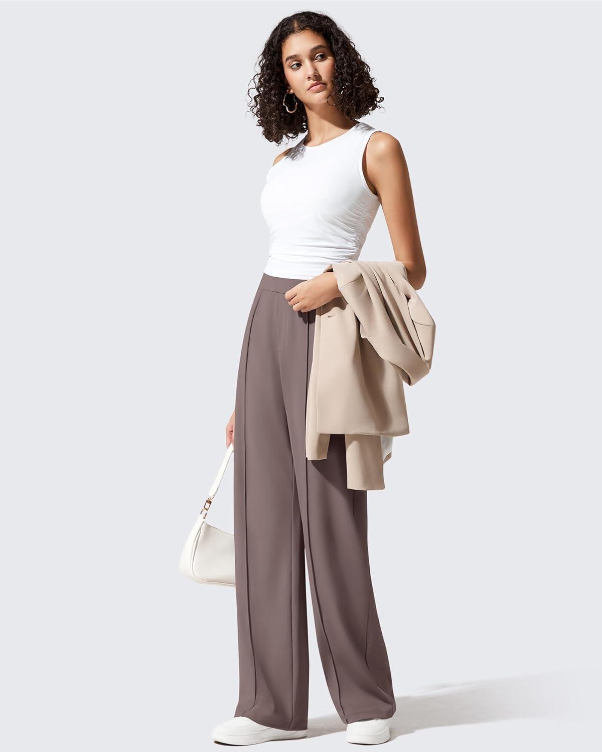 G4Free ShiftReady Women's Yoga Dress Pants with Pockets Wide Leg Business Casual Slacks High Waist Lounge Trousers(Taupe)