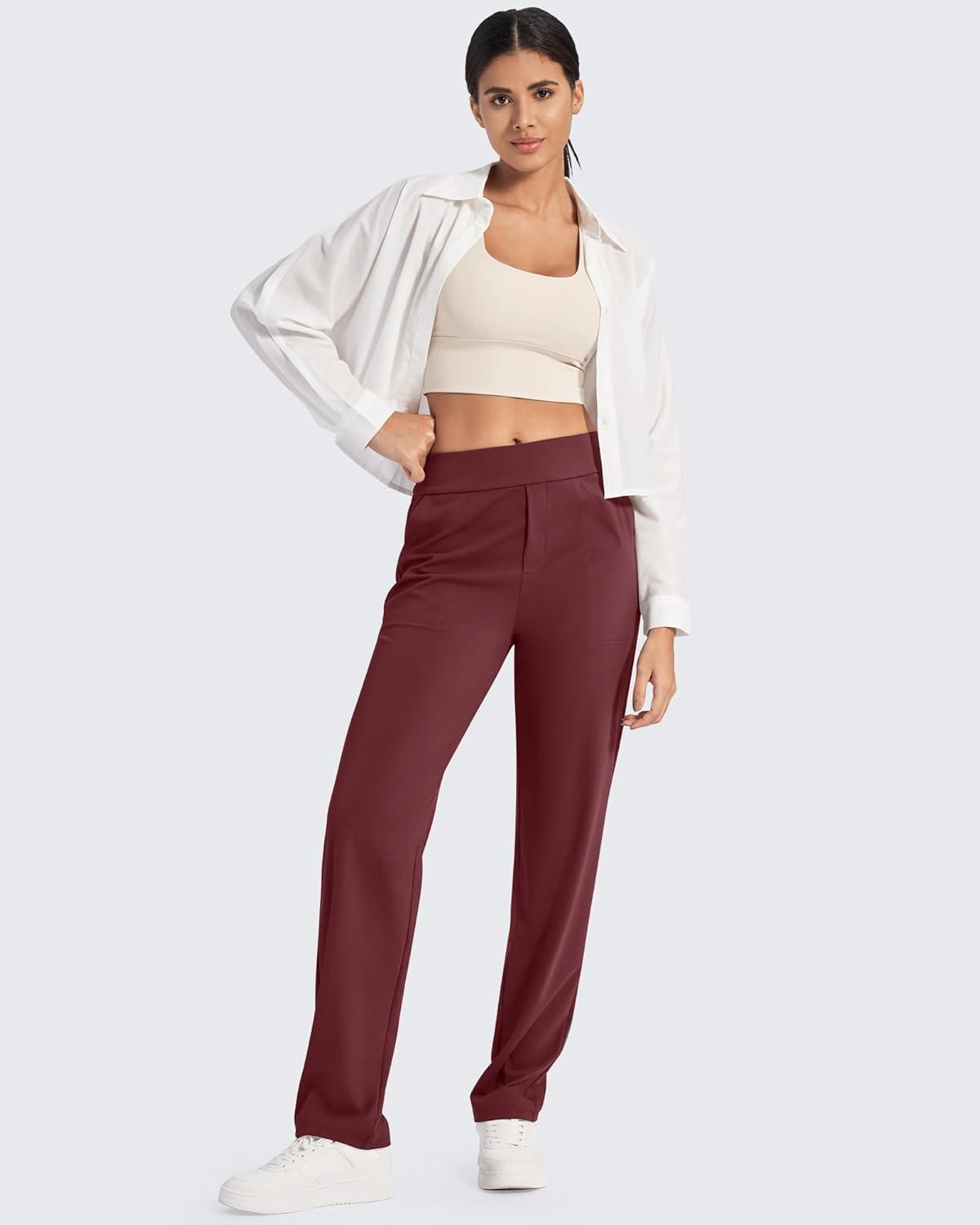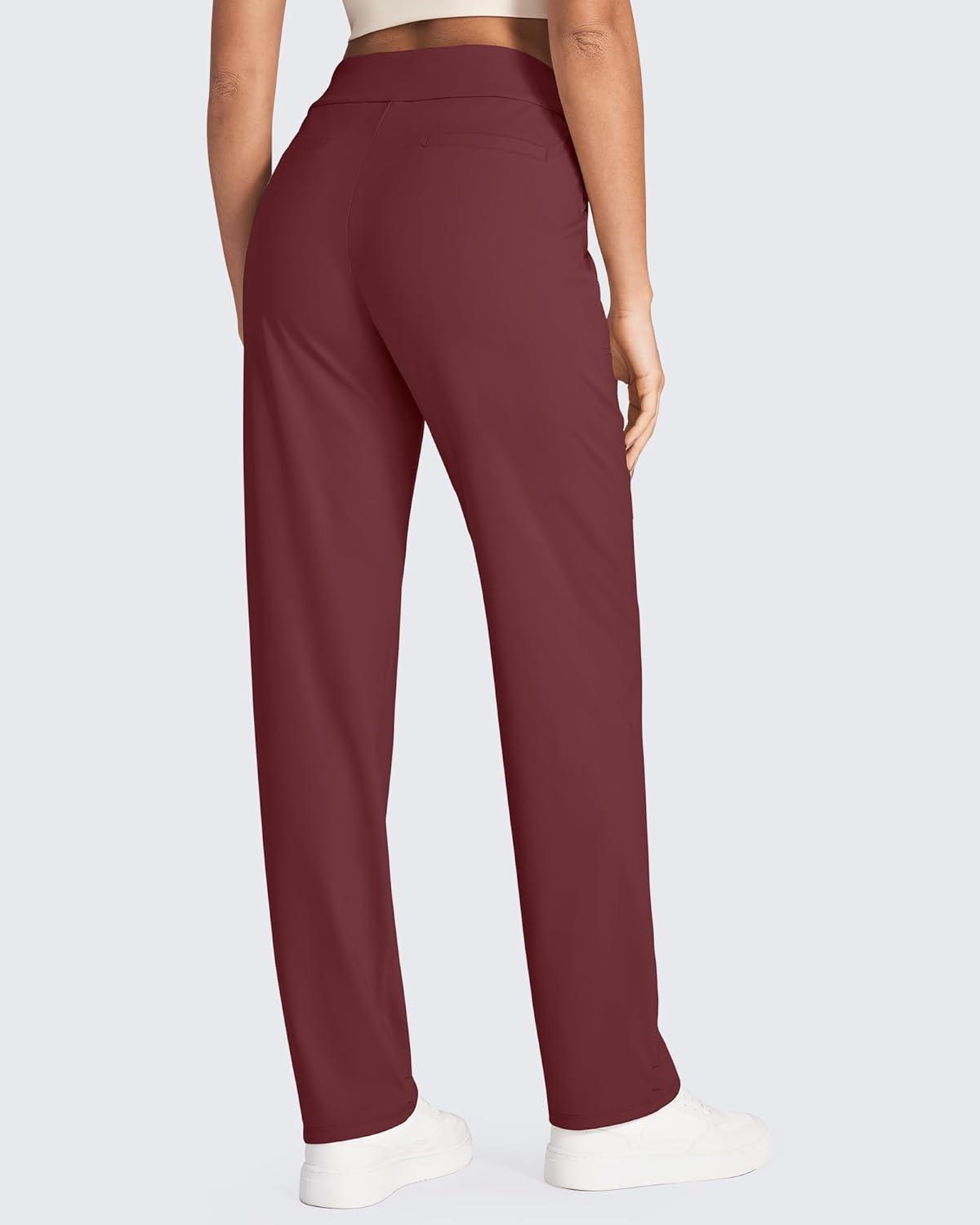 imageG4Free ShiftReady Yoga Pants Women High Waist Dress Work Pants with Pockets Straight Leg Business Casual Trousers 28quot30quot32quotDark Burgundy