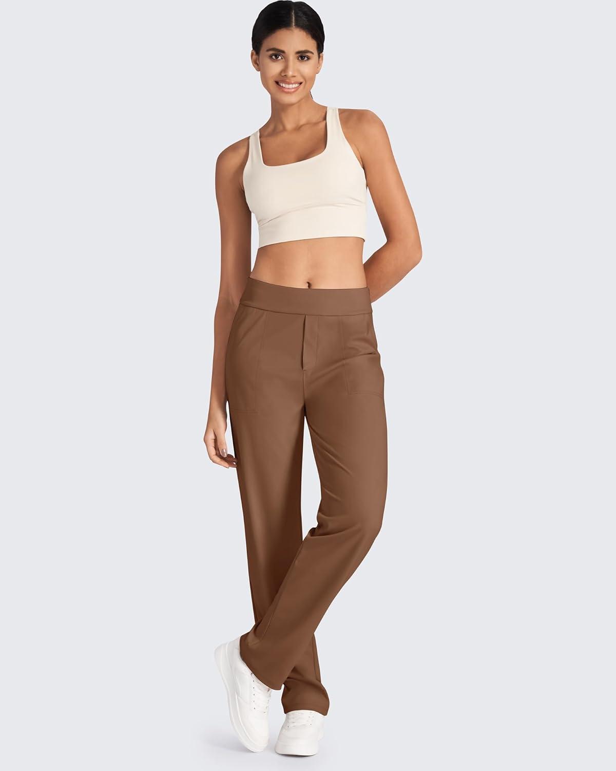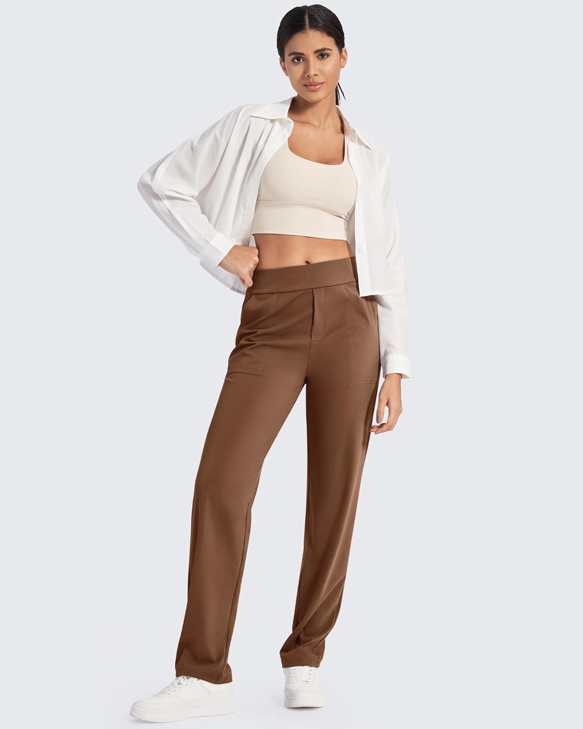 G4Free ShiftReady Yoga Pants Women High Waist Dress Work Pants with Pockets Straight Leg Business Casual Trousers 28"/30"/32"(Dark Coffee)