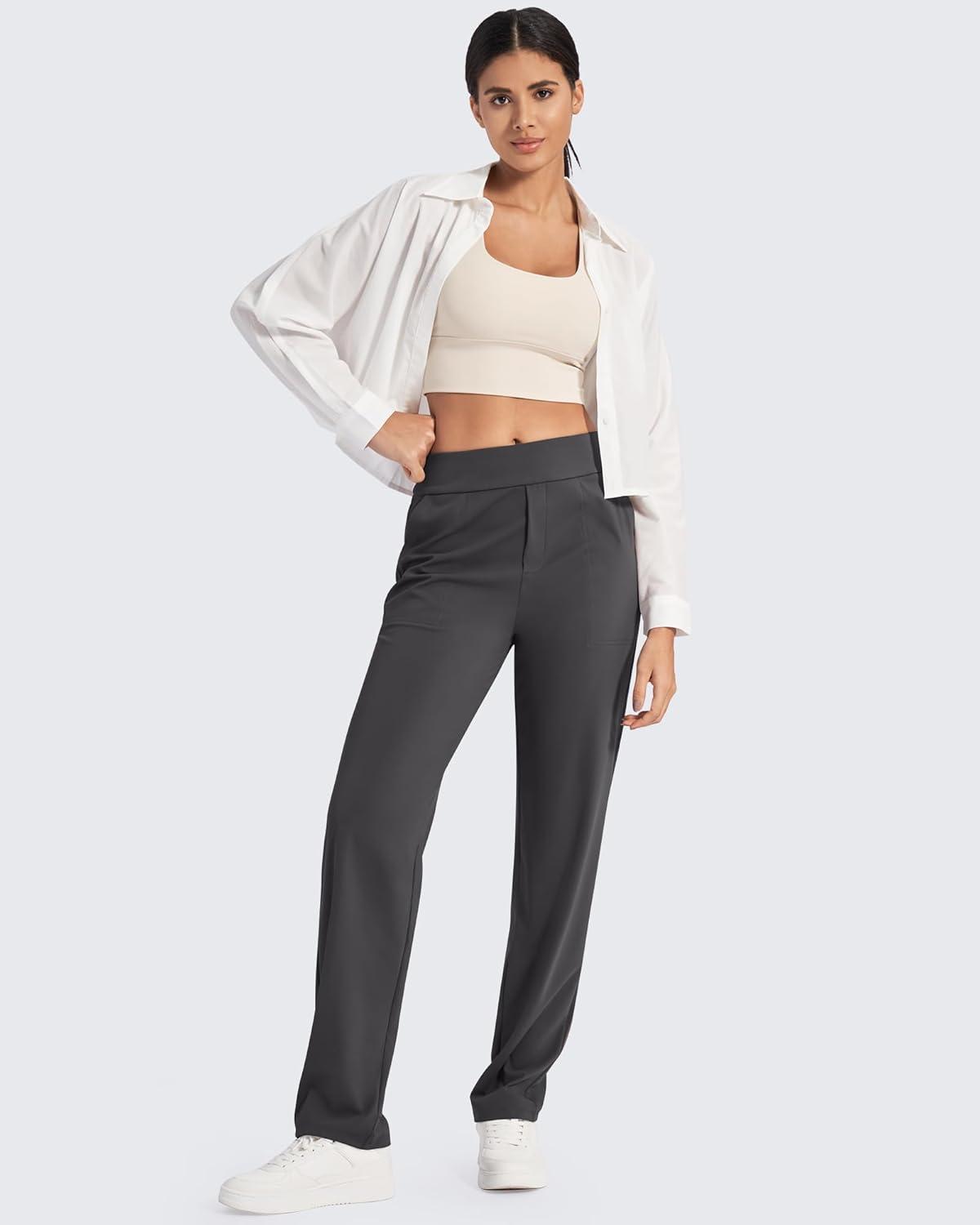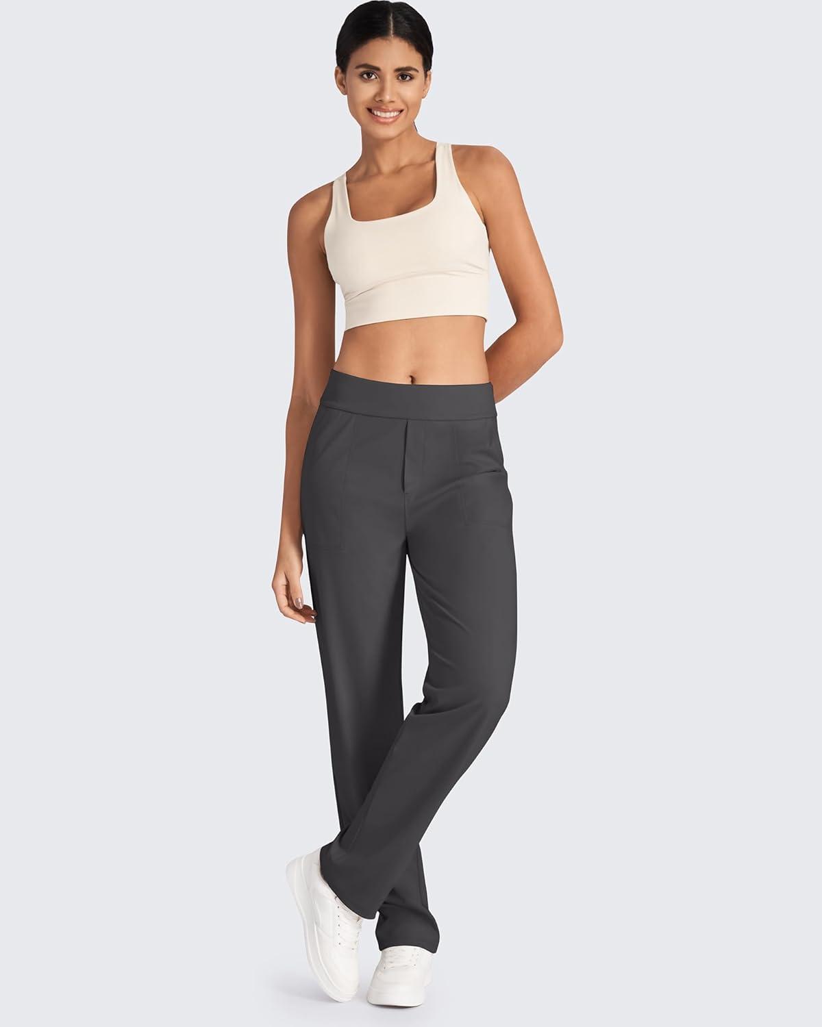 G4Free ShiftReady Yoga Pants Women High Waist Dress Work Pants with Pockets Straight Leg Business Casual Trousers 28"/30"/32"(Dark Gray)