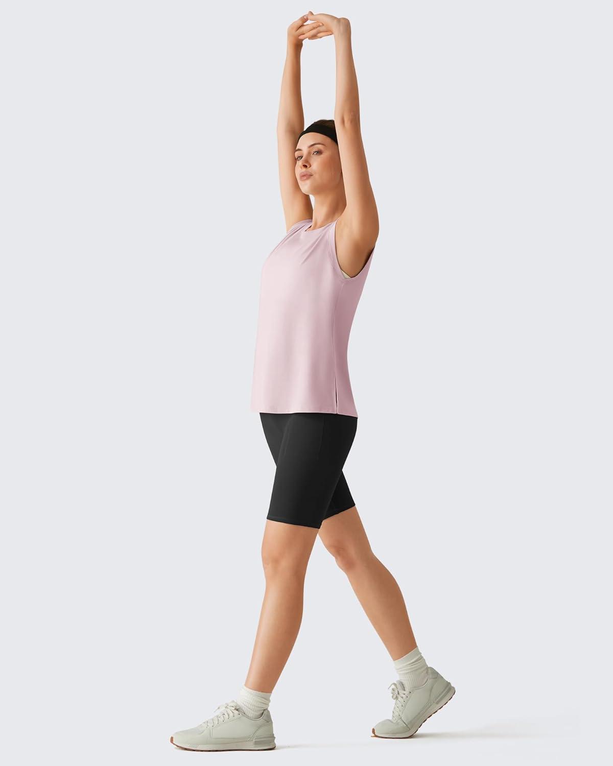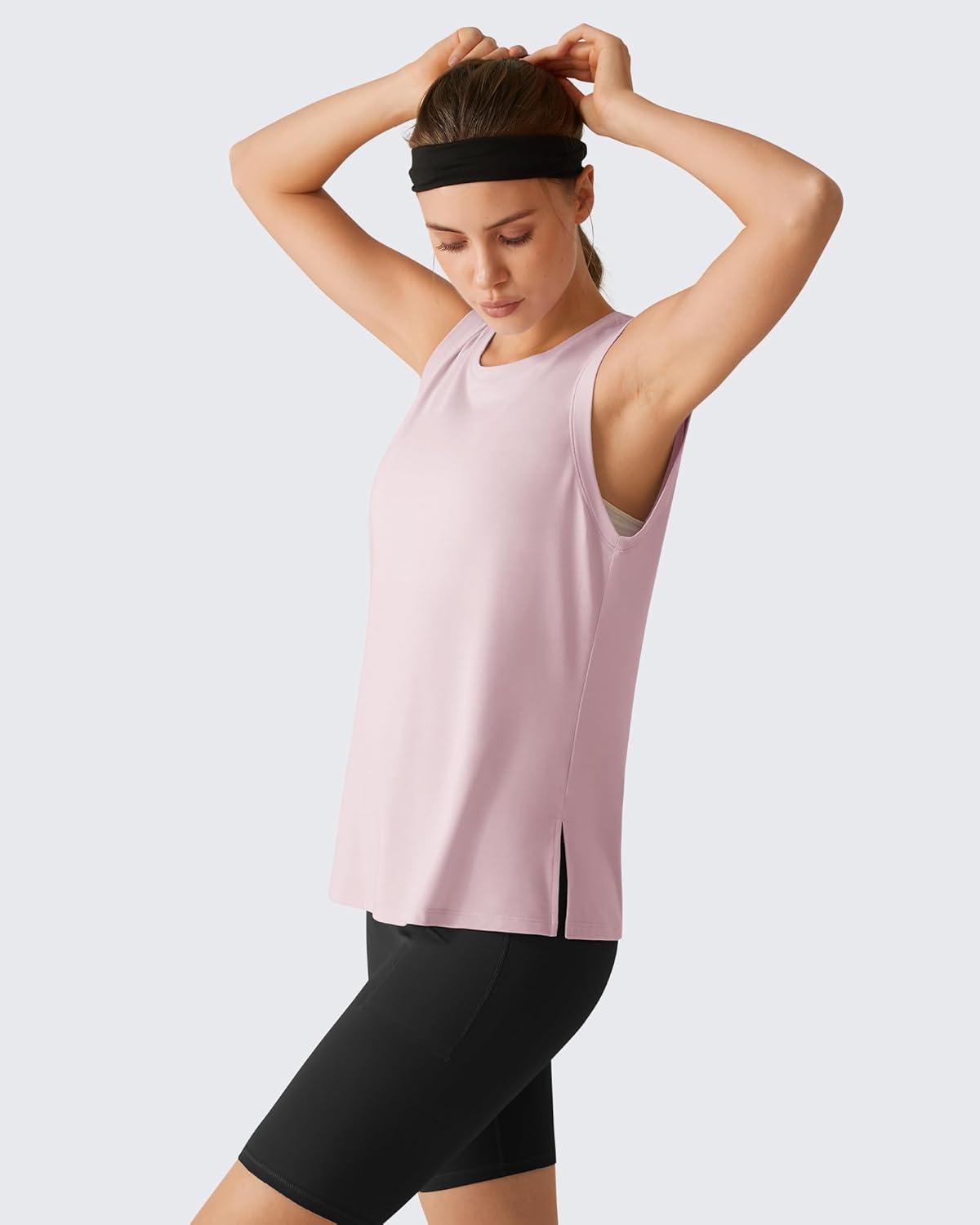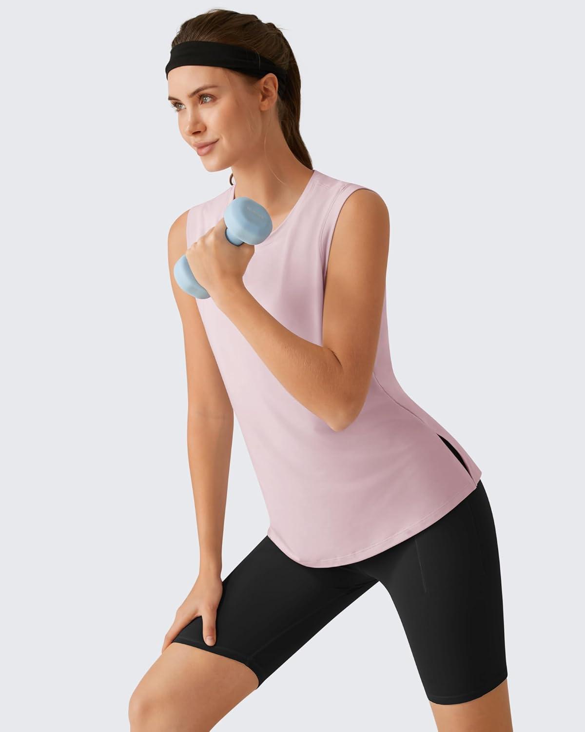 G4Free Side Slits Women's Workout Tank Tops Soft Loose Fit High Neck Athletic Tanks Stretch Sleeveless Gym Running Top(Light Pink)