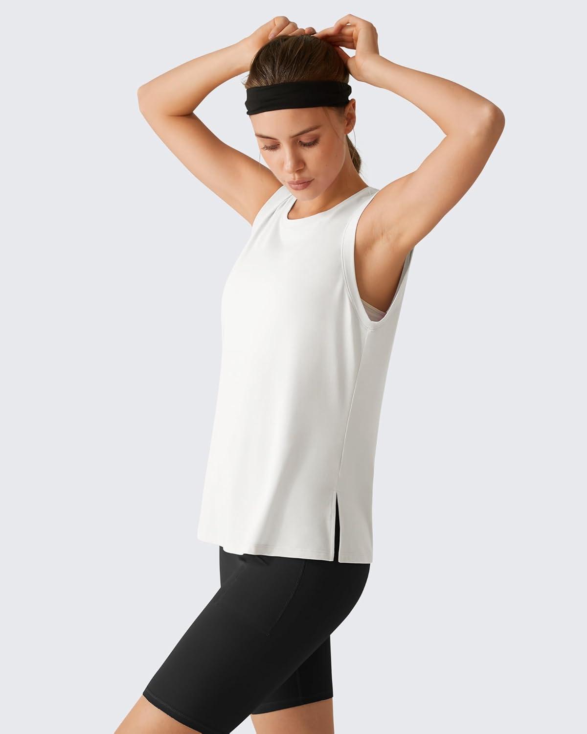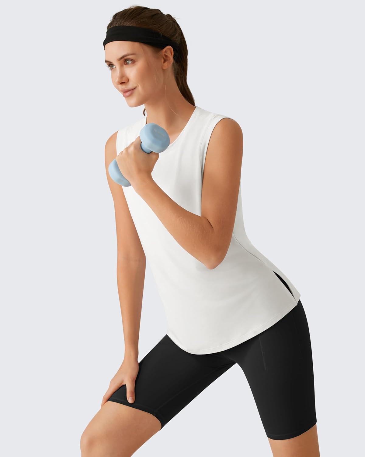 G4Free Side Slits Women’s Workout Tank Tops Soft Loose Fit High Neck Athletic Tanks Stretch Sleeveless Gym Running Top(Pure White)