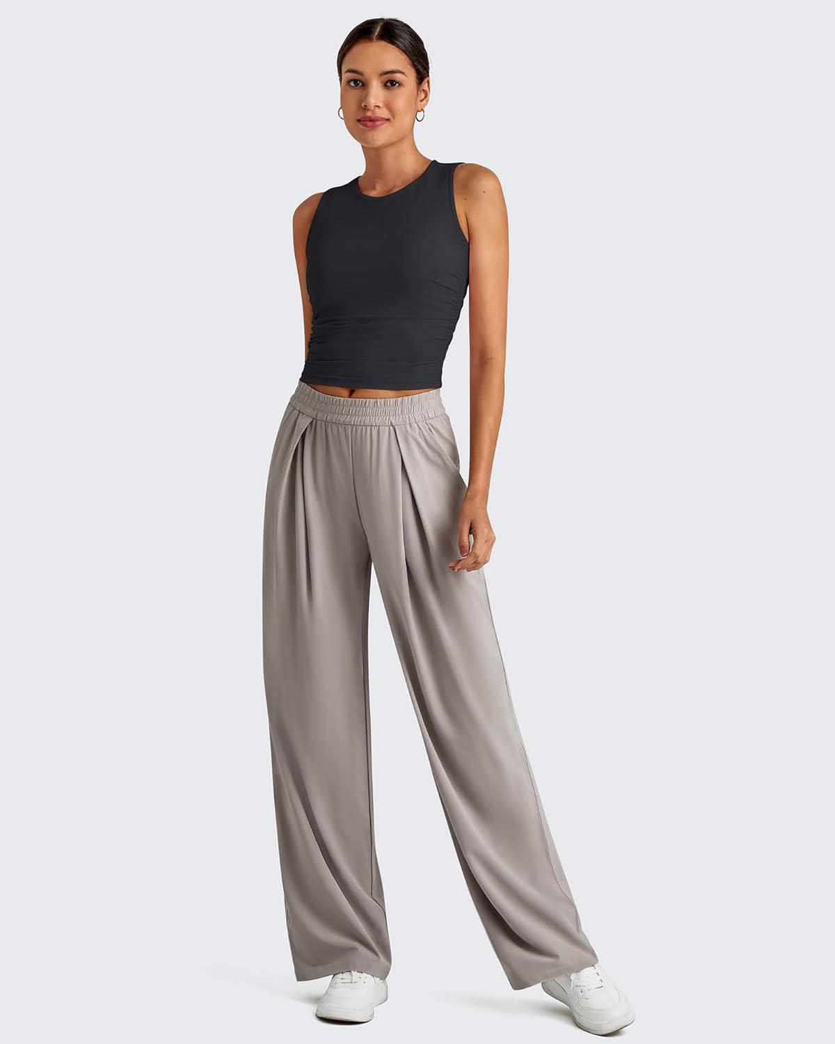 G4Free Skimetic Workout Tank Tops for Women Side Ruched Sleeveless High Neck Crop Top Summer Athletic Gym Shirts(Gray)
