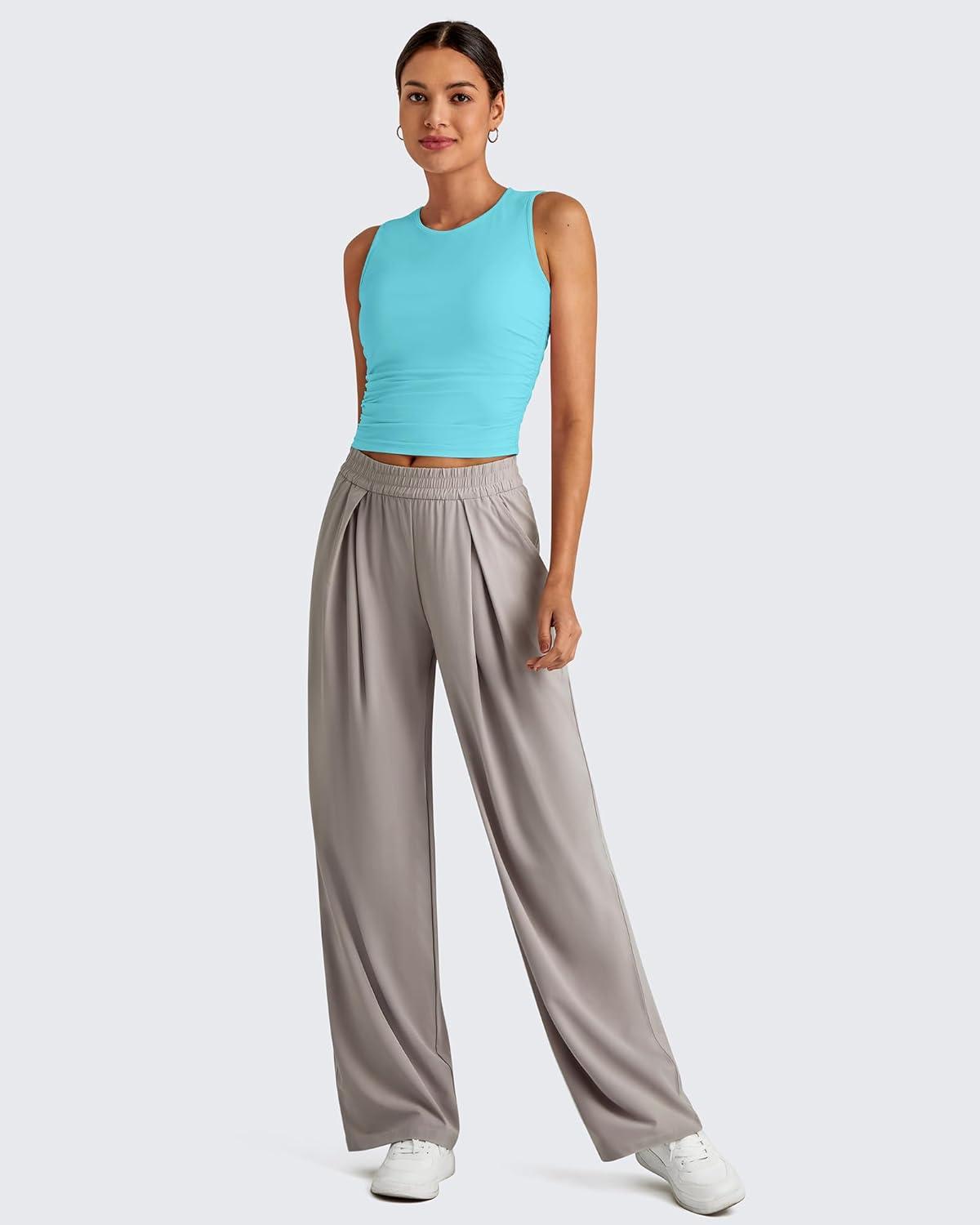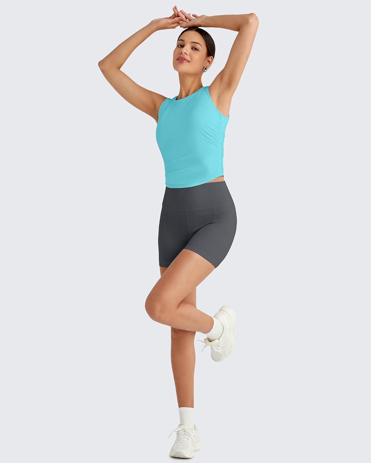 G4Free Skimetic Workout Tank Tops for Women Side Ruched Sleeveless High Neck Crop Top Summer Athletic Gym Shirts(Lake Blue)
