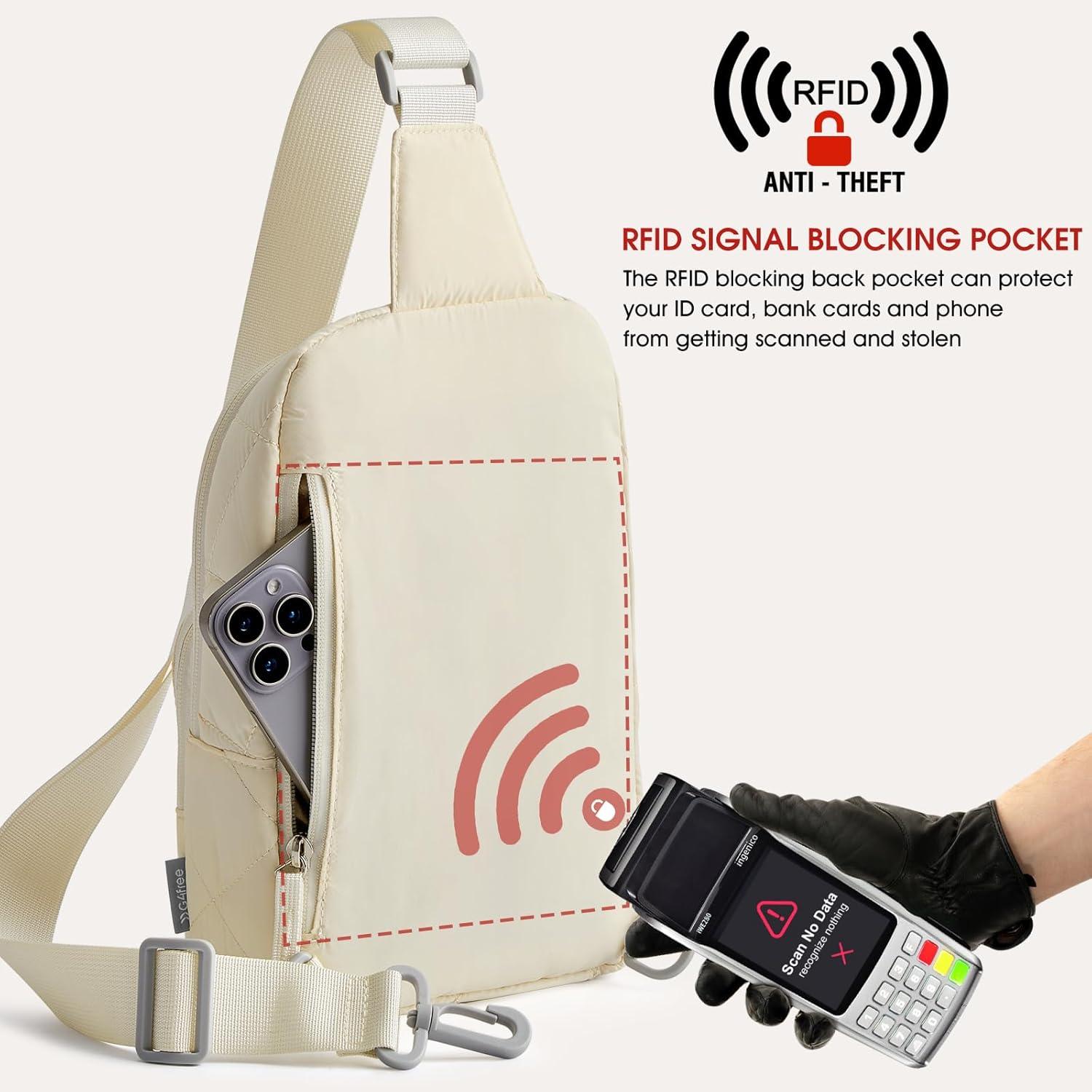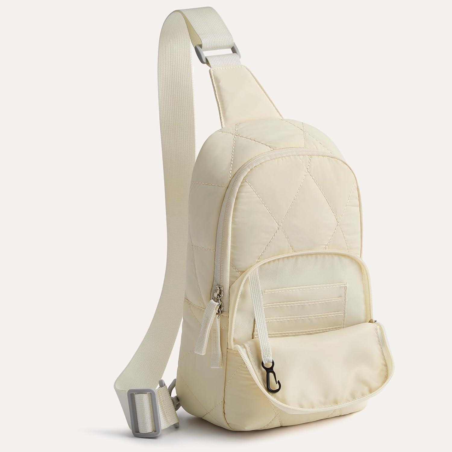 G4Free Sling Bag for Women, Casual Quilted Puffer Crossbody Purse Lightweight Fanny Packs for Daily Travel Work(Beige)