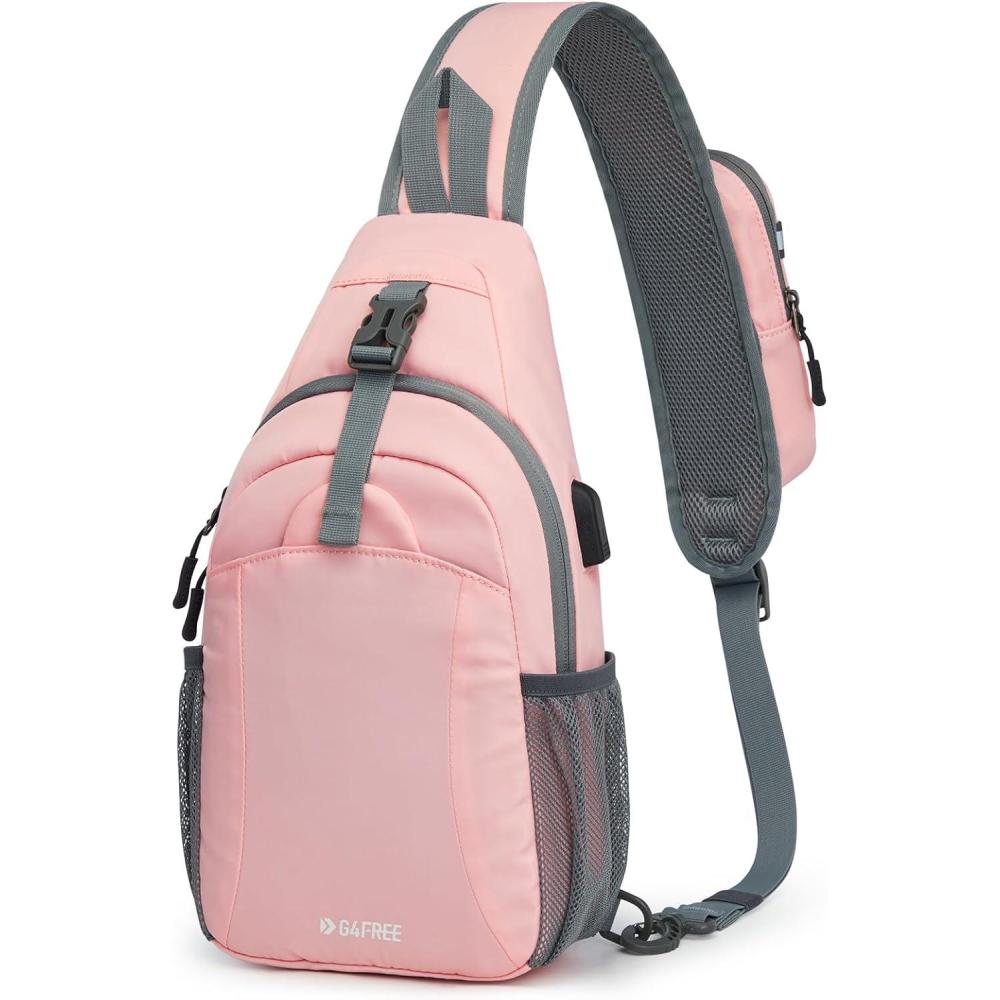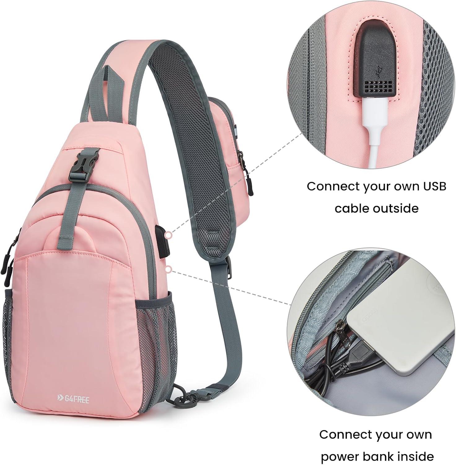 imageG4Free Sling Bag RFID Crossbody Sling Backpack with USB Charging Port Travel Hiking Daypack Shoulder Chest Bag for Women MenBlackPink