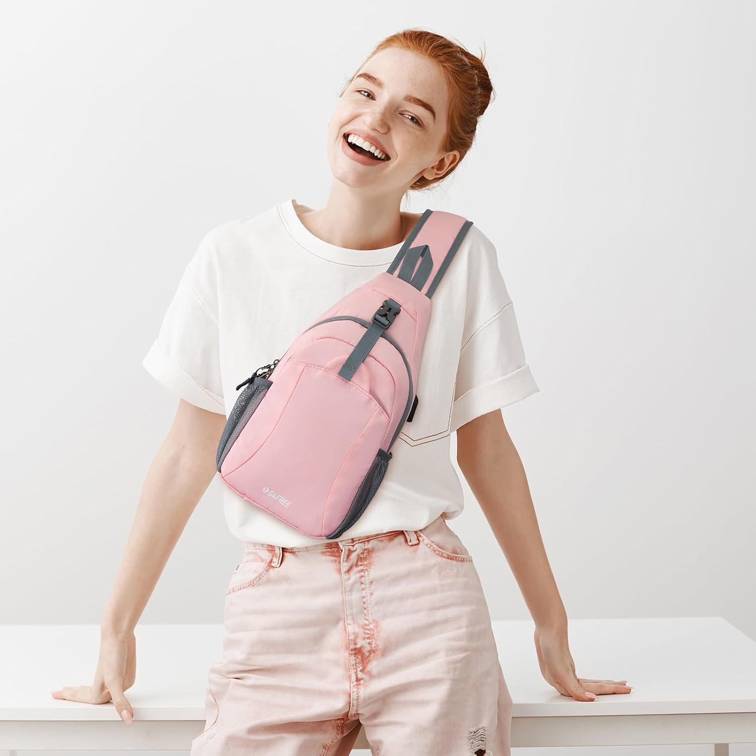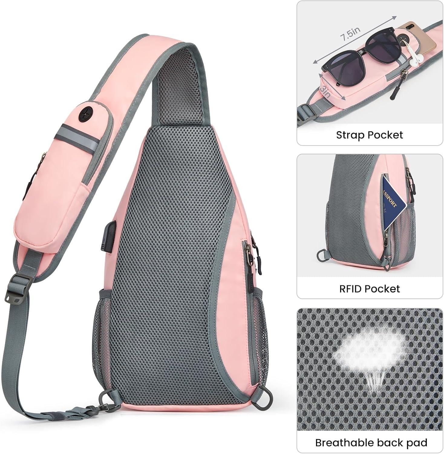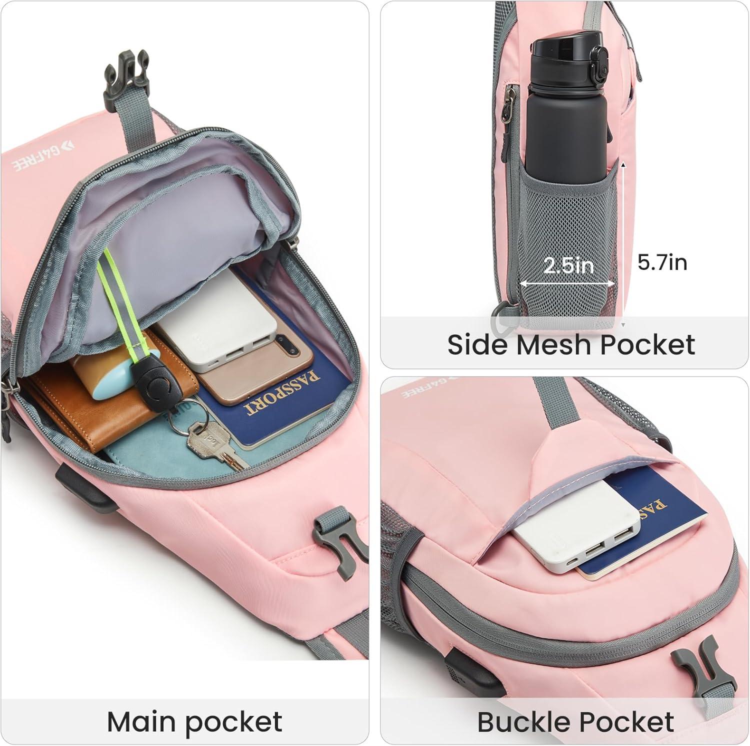 G4Free Sling Bag RFID Crossbody Sling Backpack with USB Charging Port, Travel Hiking Daypack Shoulder Chest Bag for Women Men(Black)(Pink)