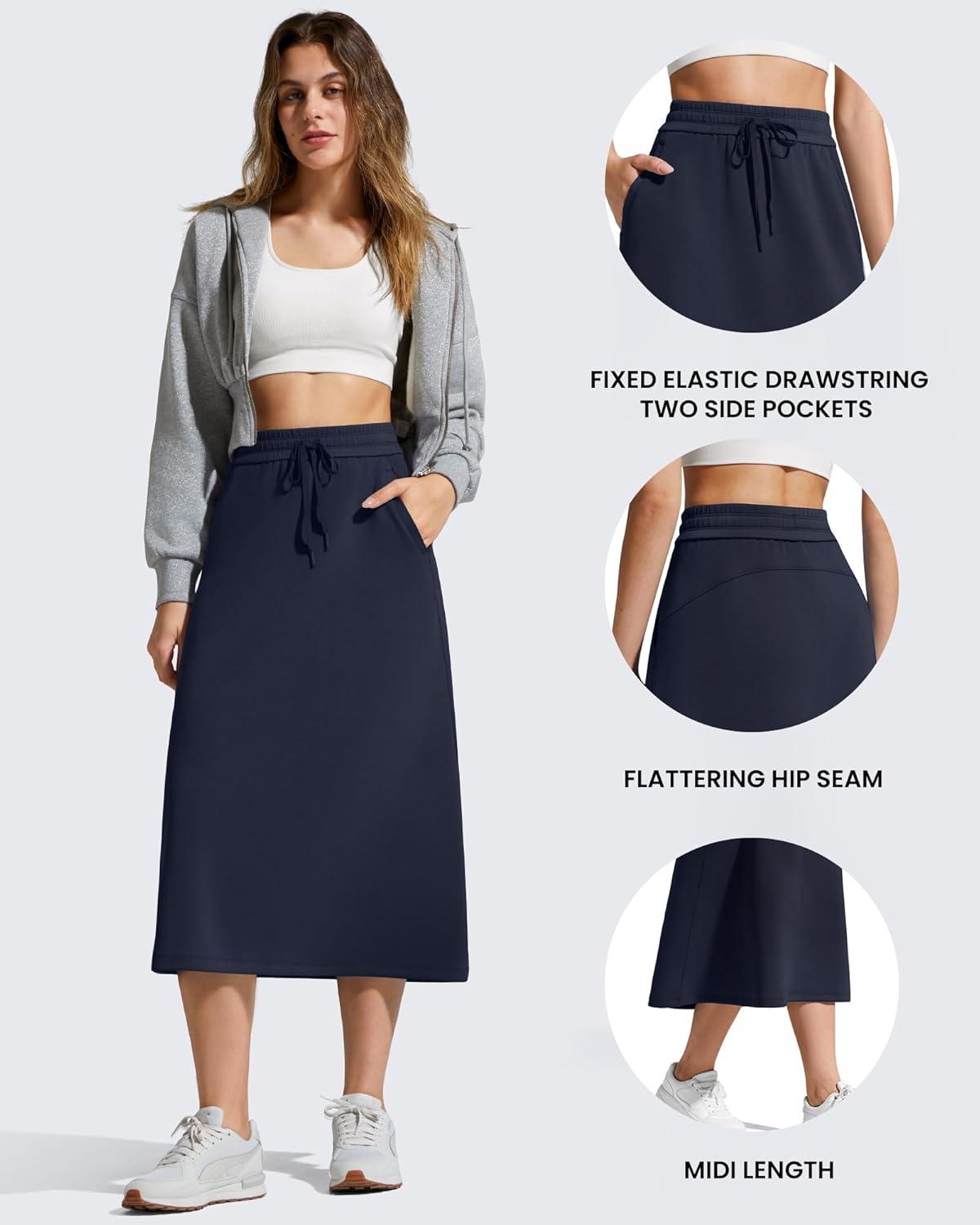 G4Free Smoofit A-Line Midi Skirts for Women Modal Soft Drawstring Maxi Skirt Long Casual Fall with 2 Pockets(Dark Navy)