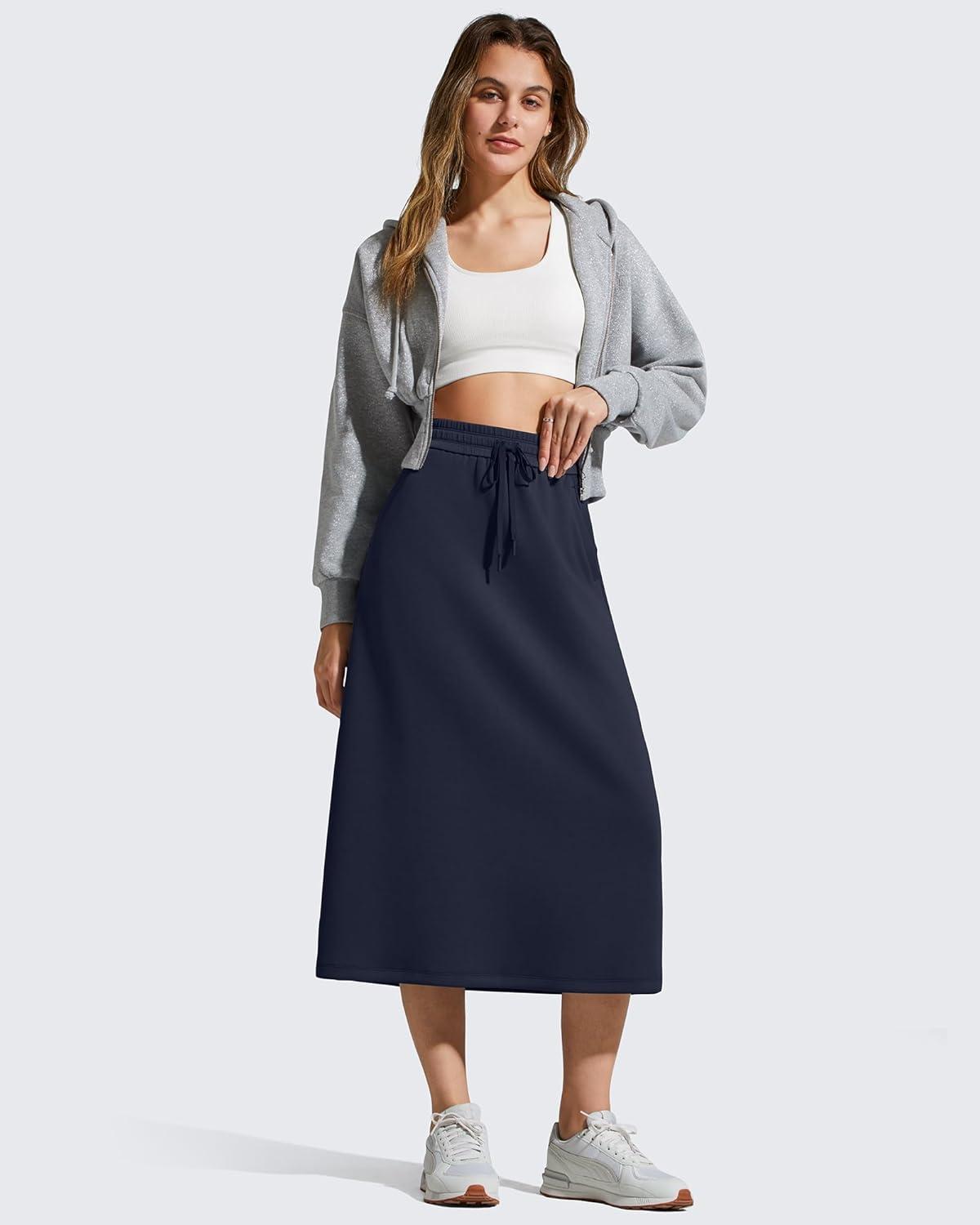 imageG4Free Smoofit ALine Midi Skirts for Women Modal Soft Drawstring Maxi Skirt Long Casual Fall with 2 PocketsDark Navy