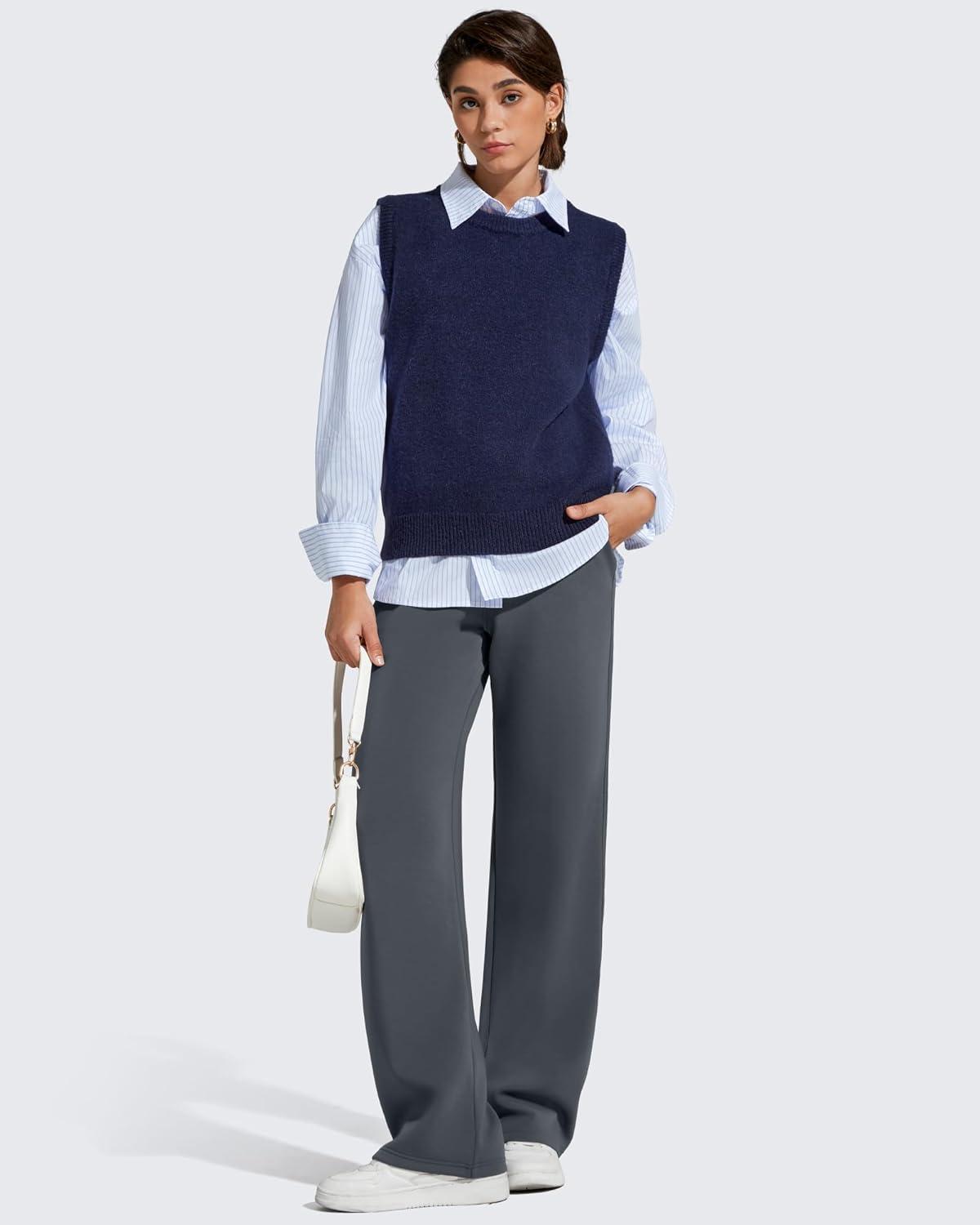 imageG4Free Smoofit Fleece Lined Wide Leg Sweatpants for Women Drawstring Thermal Casual Pants with PocketsDark Navy