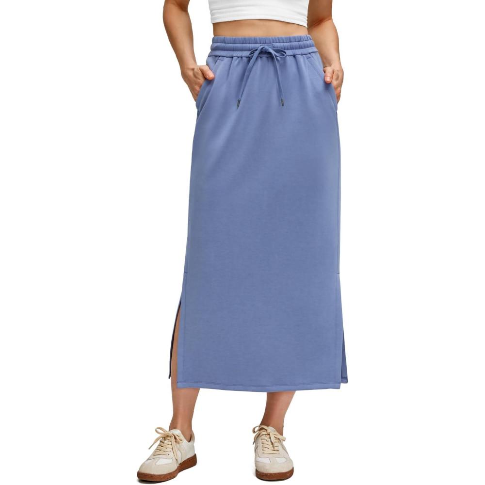 G4Free Smoofit Maxi Skirt for Women Modal Soft Drawstring Fall Casual Long Skirts Side Slits Lounge with 2 Pockets(Denim Blue)