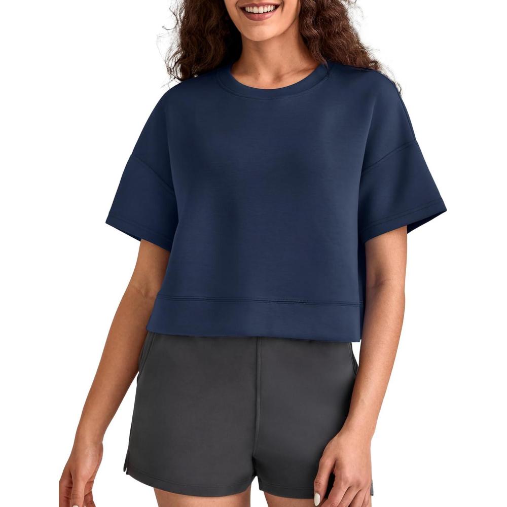 G4Free Smoofit Modal Soft Boxy Tee Shirts for Women Short Sleeve Drop Shoulder Crew Neck Basic Tops Casual Lounge(Dark Navy)