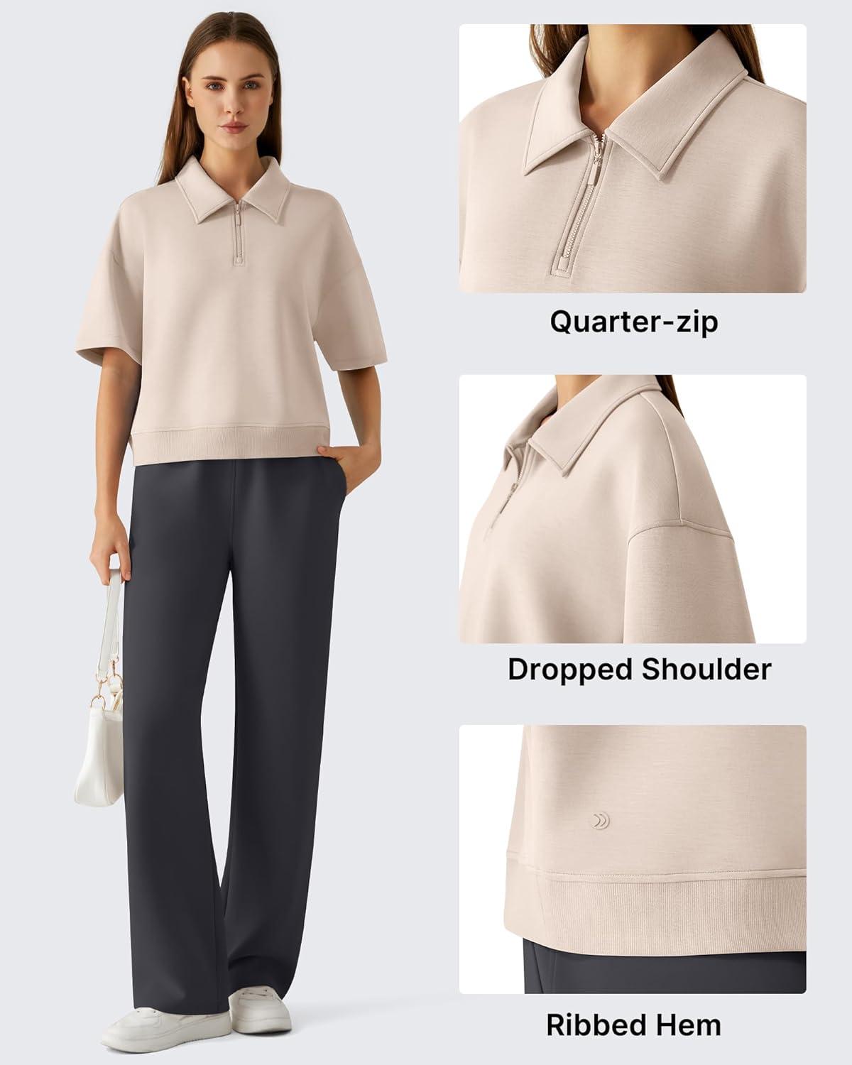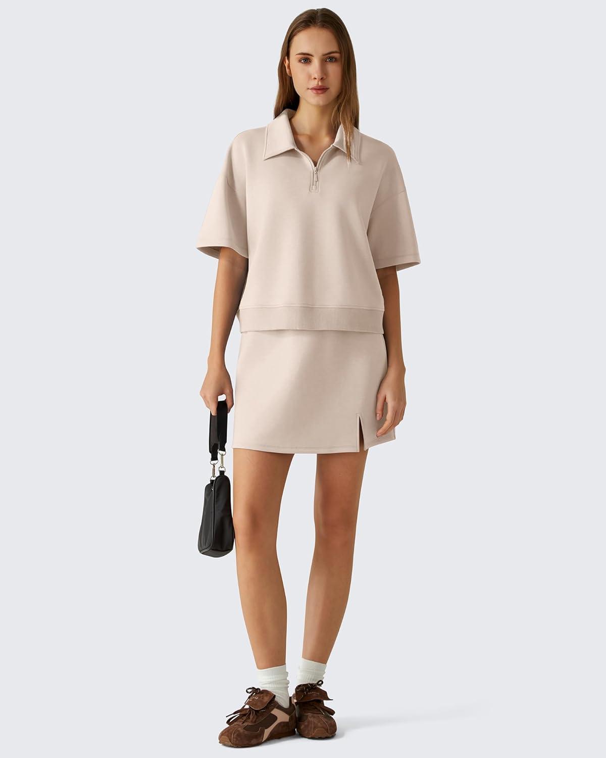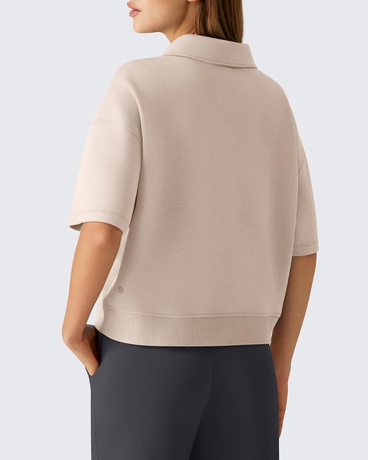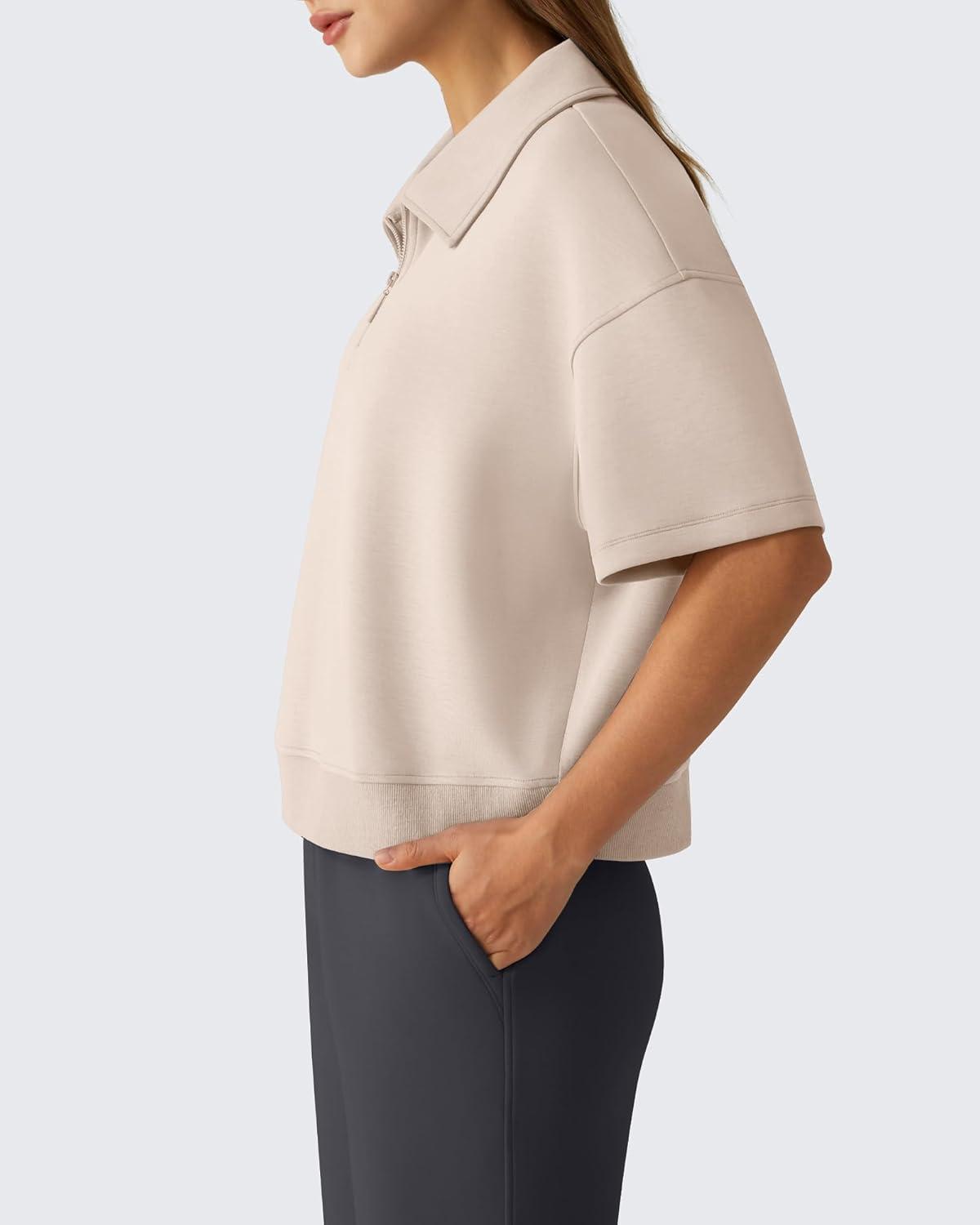 G4Free Smoofit Modal Soft Polo Shirts for Women Zip Up Short Sleeve Tops Loose Fit for Casual Business Work(Ivory)