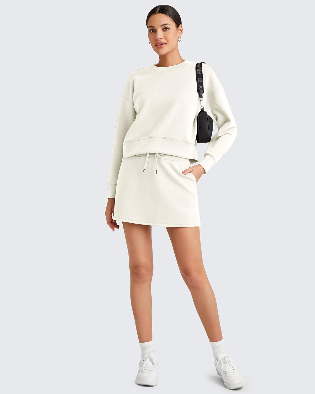 G4Free Smoofit Modal Soft Sweat Skirts for Women – A-Line Drawstring Summer Casual Lounge Short Skirt with Pockets(Ivory)