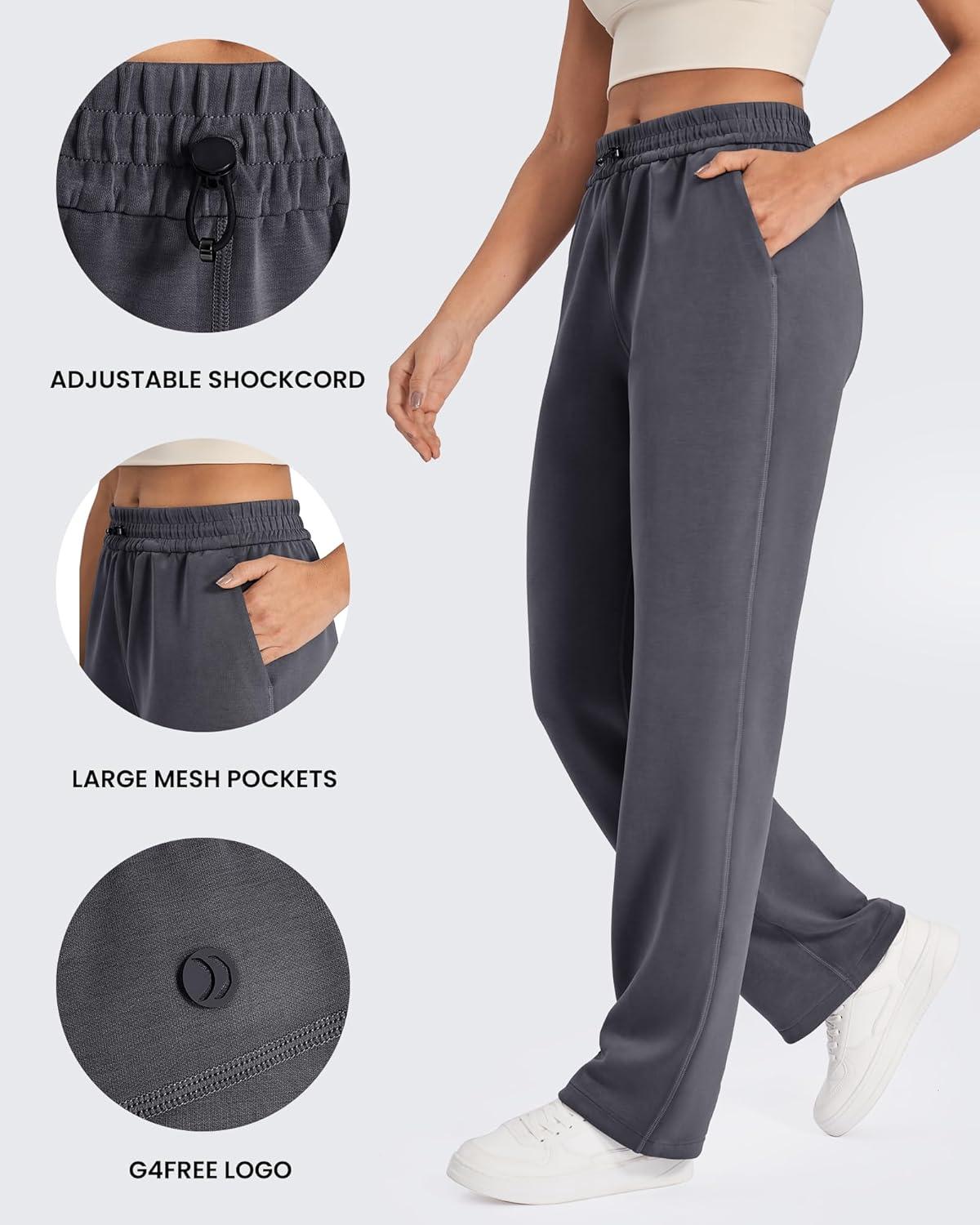 G4Free Smoofit Modal Soft Wide Leg Sweatpants Yoga Pants with Pockets Drawcord Casual Lounge Pants(Dark Grey)