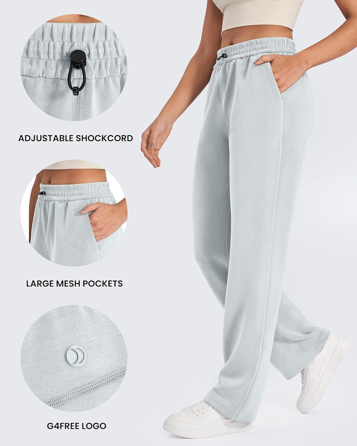G4Free Smoofit Modal Soft Wide Leg Sweatpants Yoga Pants with Pockets Drawcord Casual Lounge Pants(Light Gray)