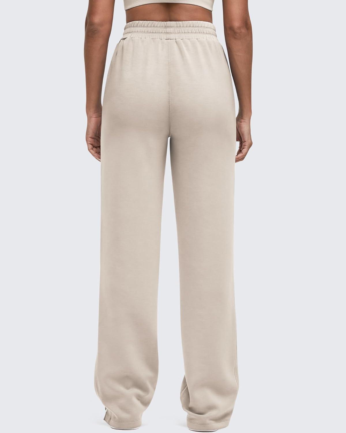 G4Free Smoofit Modal Soft Women Wide Leg Sweatpants High Waisted Side Slit Casual Pants with Pockets Petite/Regular/Tall(Light Khaki)