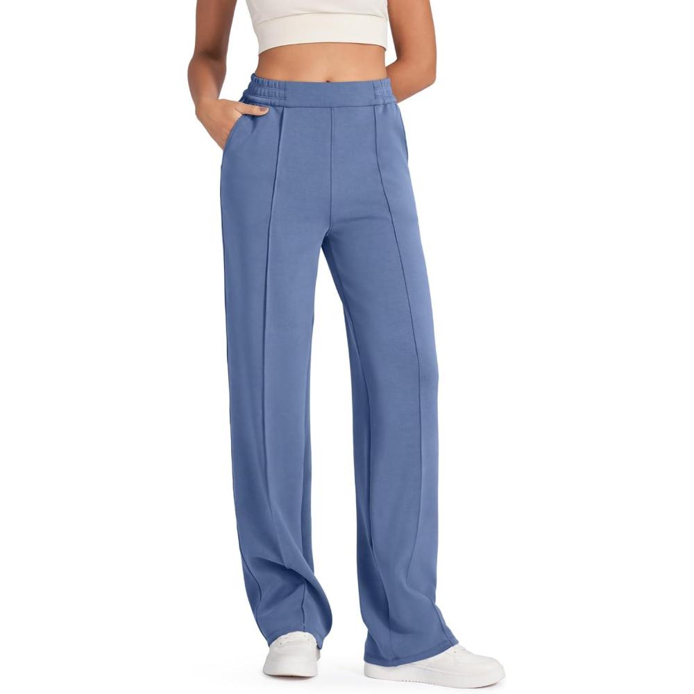 G4Free Smoofit Modal Soft Women Wide Leg Sweatpants Yoga Pants Casual Lounge Trousers Short/Petite/Regular/Tall/Extral Tall(Demin Blue)