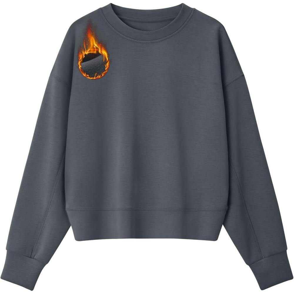 G4Free Smoofit Modal Soft Women's Fleece Sweatshirts Crewneck Pullover Hoodies Long Sleeve Casual Tops(Dark Gray)