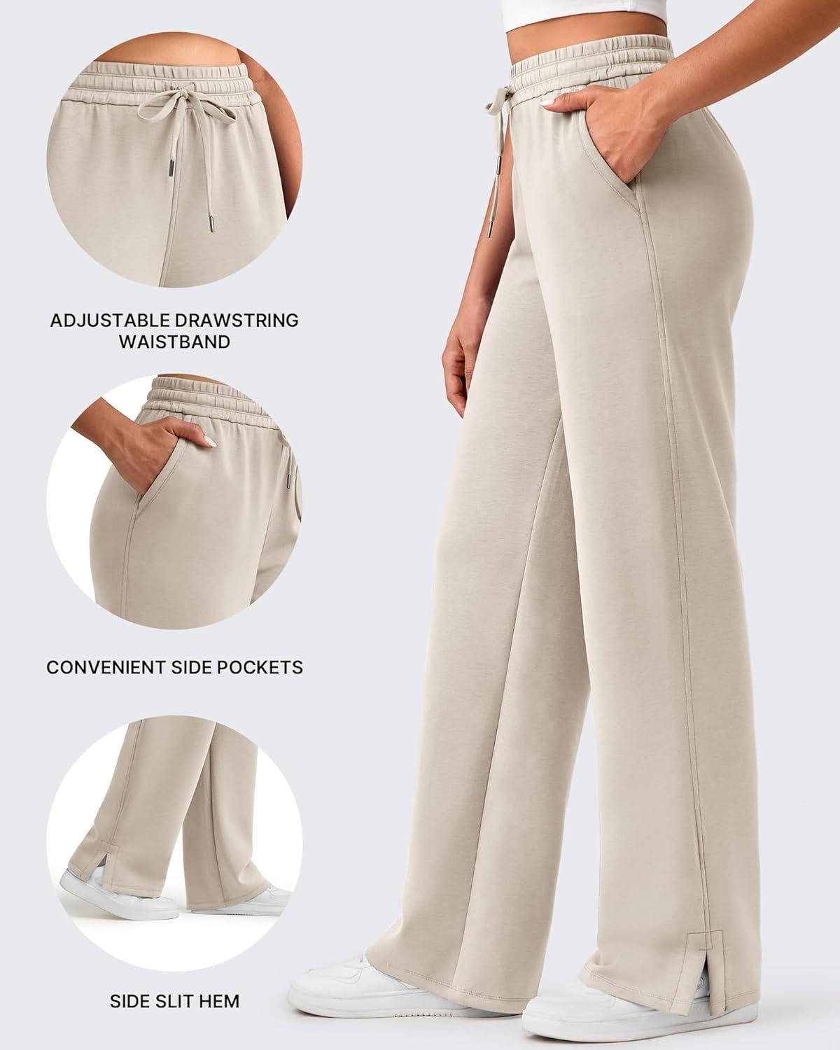 imageG4Free Smoofit Modal Soft Womens Wide Leg Sweatpants High Waisted Drawstring Side Slit Casual Pants 25quot27quot29quot31quot33quotLight Khaki