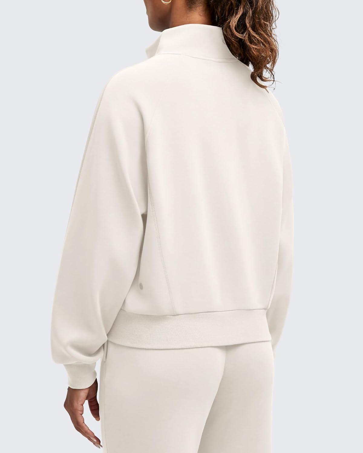 G4Free Smoofit Modal Soft Women’s Zip Up Jackets Loose Fit Mock Neck Casual Tops with Pockets(Ivory)